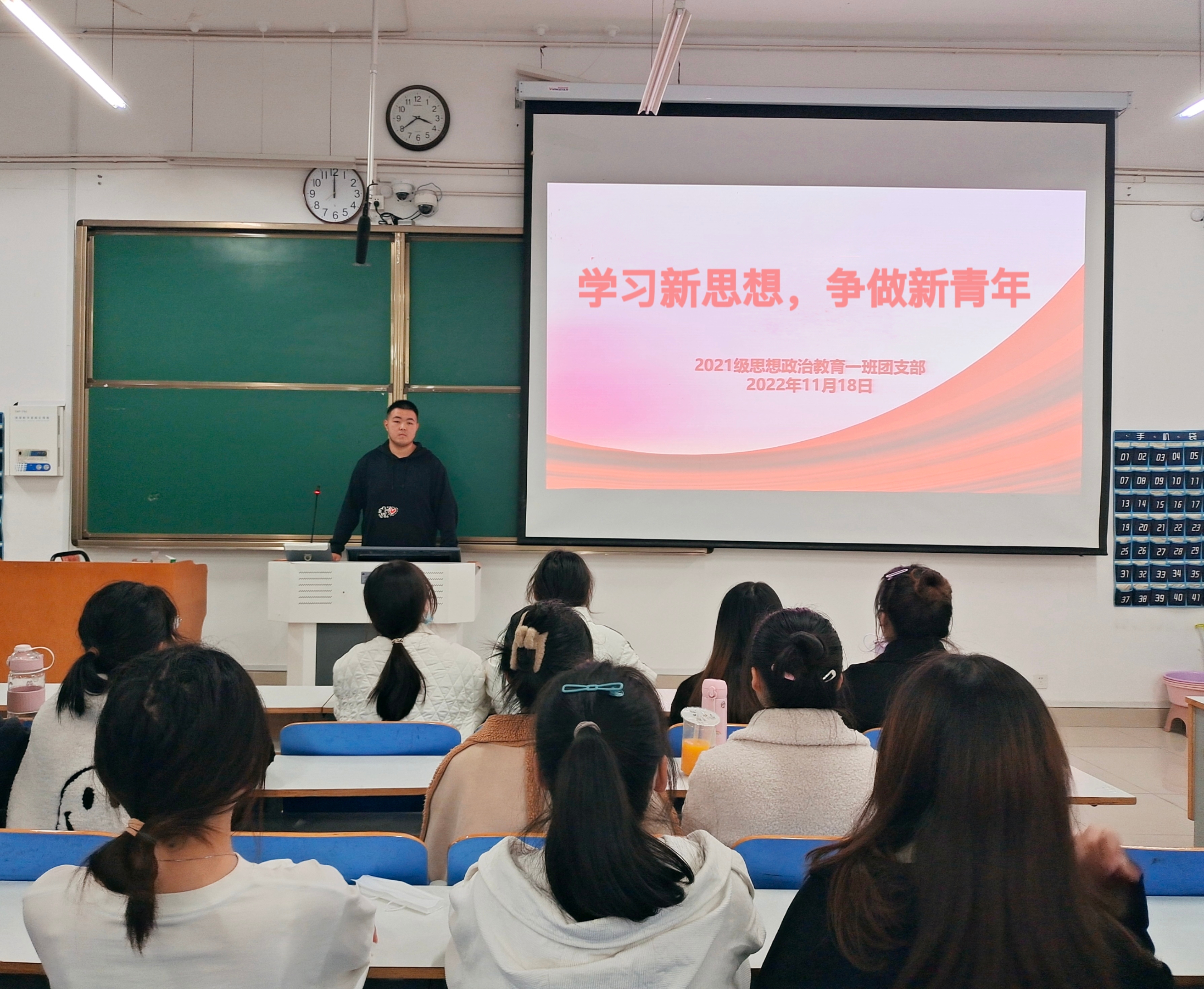 11月22日下午,太阳集团tyc59972021级思想政治教育一班在社科楼514教室召开“学习新思想,争做新青年”主题班会。2021级思想政治教育一班全体成员共同参与本次会议。会议由团支书戴翰林主持。