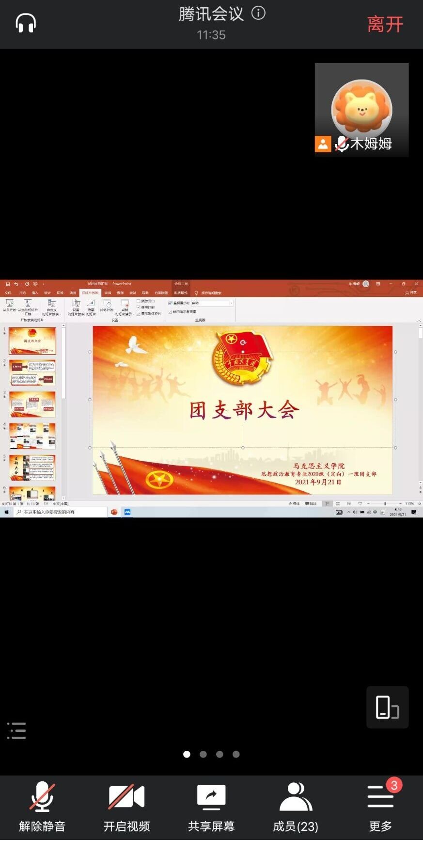 9月21日上午,太阳集团tyc59972020级思想政治教育(定向)一班通过腾讯会议在线上顺利举行了团支部大会。2020级思想政治教育(定向)一班全体学生聆听了此次会议。