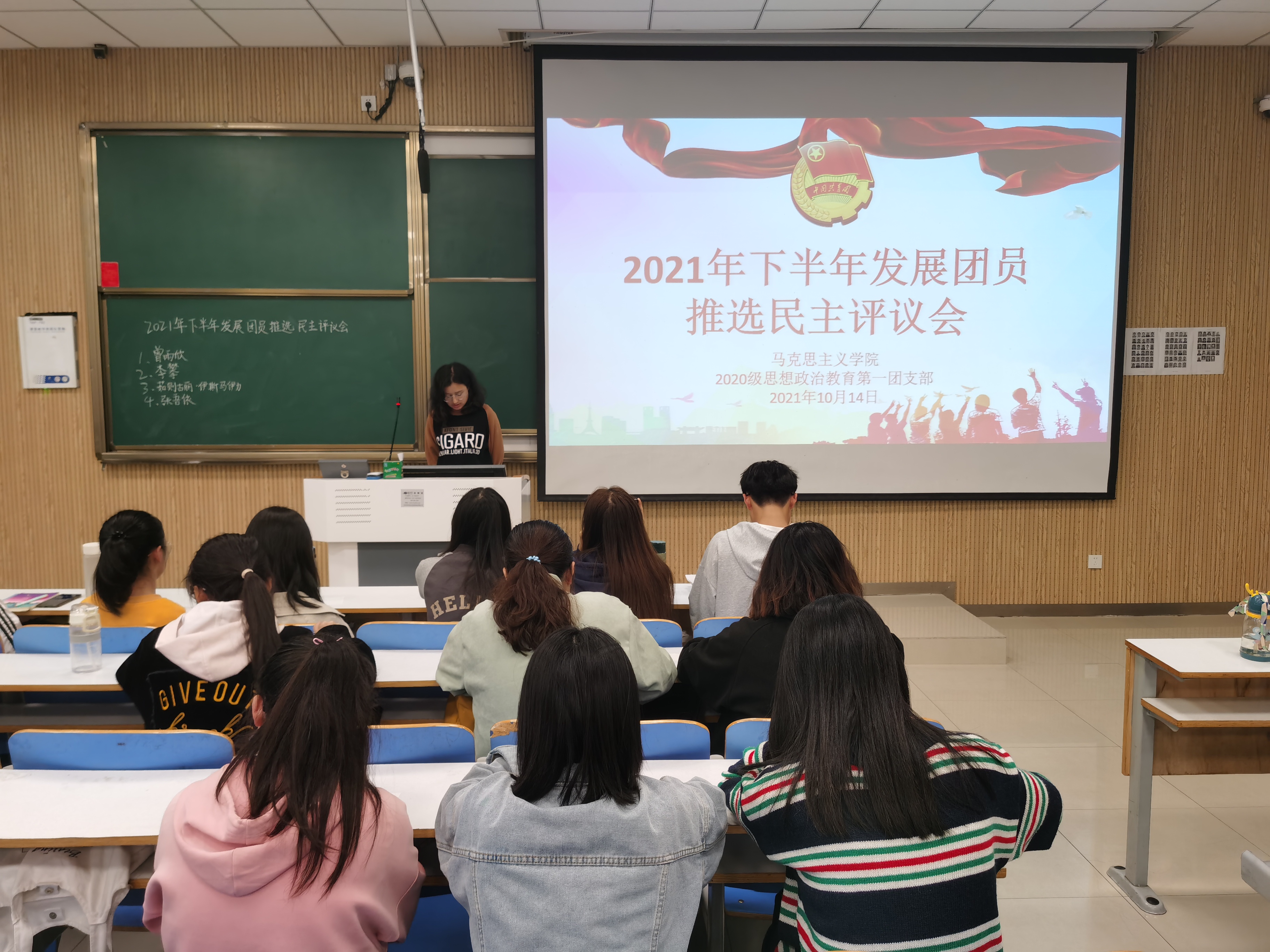 10月14日下午,太阳集团tyc59972020级思想政治教育一班在社科楼515教室顺利召开2021年下半年发展团员推选民主评议会。2020级思想政治教育一班全体团员参加了本次评议会。评议会由副班长白帅豪主持。