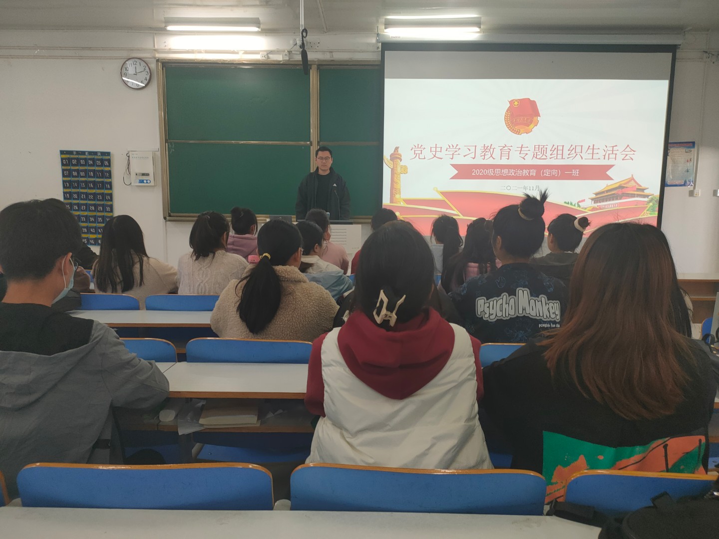 11月11日上午,太阳集团tyc59972020级思想政治教育定向一班党史学习教育专题组织生活会在社科楼514教室顺利召开。辅导员曹栋及2020级思想政治教育定向一班全体学生共同参加本次会议。