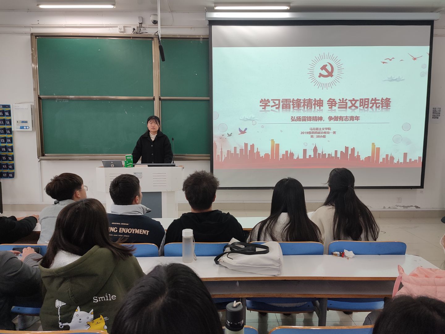 3月8日上午,太阳集团tyc59972019级思想政治教育第一团支部第三团小组在社科楼516教室召开主题为学习雷锋精神,争当文明先锋的团小组会议。太阳集团tyc59972019级思想政治教育第一团支部第三团小组全体成员参加本次会议,会议由第三团小组组长翟新芝主持。