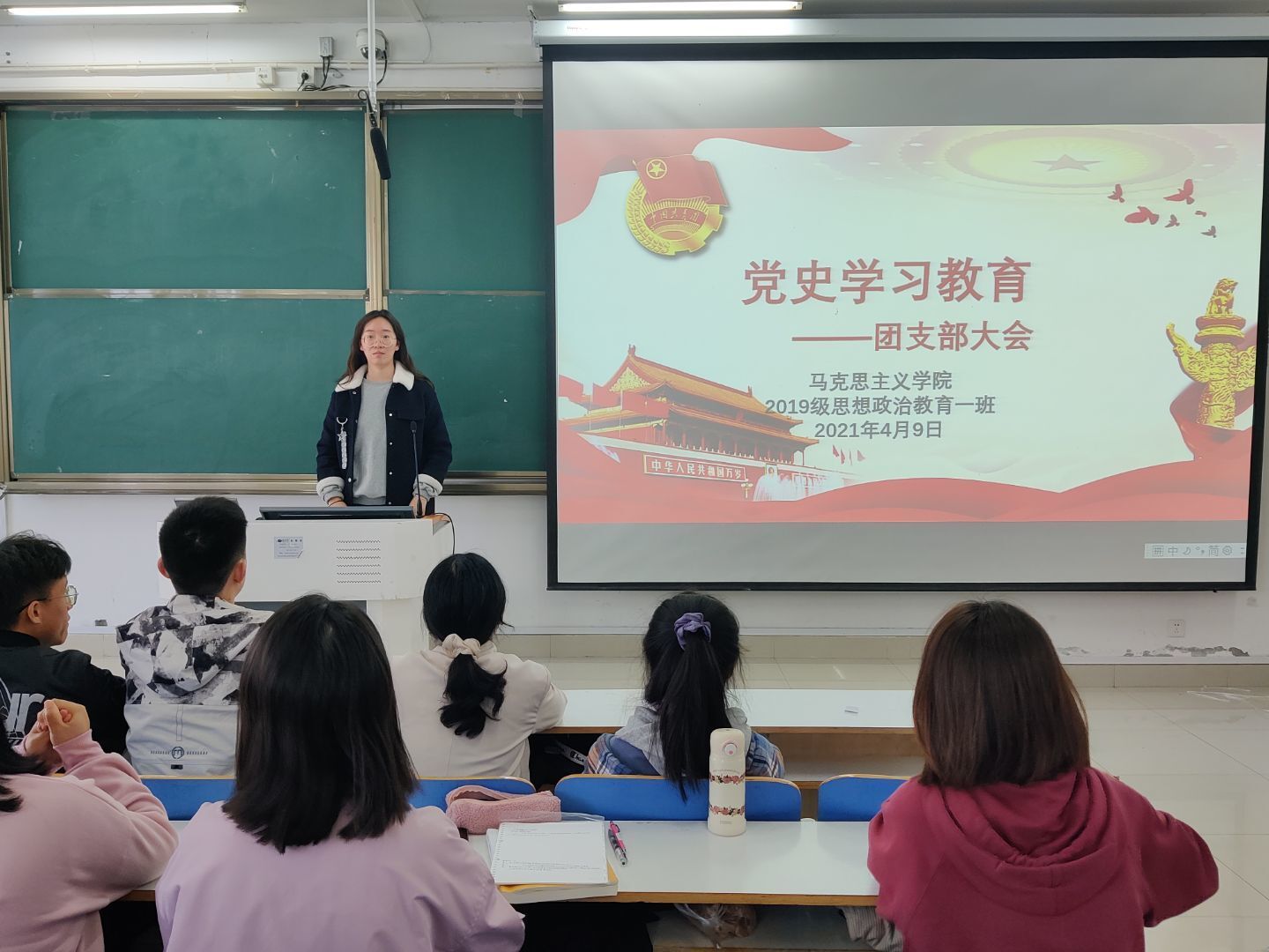 4月9日上午,太阳集团tyc59972019级思想政治教育一班第一团支部在社科楼515教室召开主题为“党史学习教育”团支部大会。太阳集团tyc59972019级思想政治教育一班全体成员参加本次会议,会议由班长贾子漪主持。