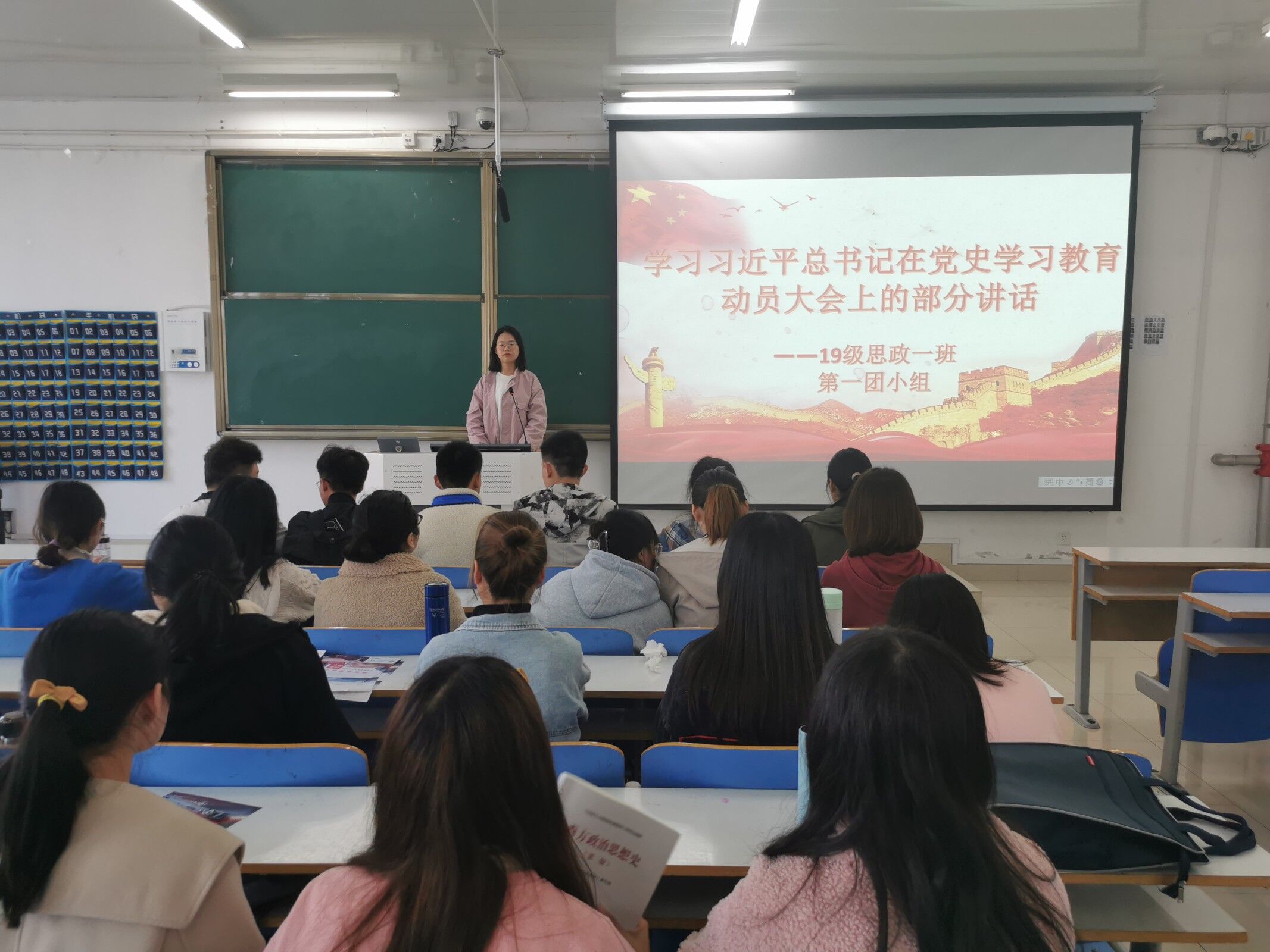 4月9日上午,太阳集团tyc5997思想政治教育一班第一团小组在社科楼516教室开展了以学习习近平总书记在党史学习教育动员大会上的部分讲话主题团小组会议。太阳集团tyc59972019级思想政治教育第一支部第一团小组全体成员参加本次会议,会议由第一团小组组长刘勐主持。