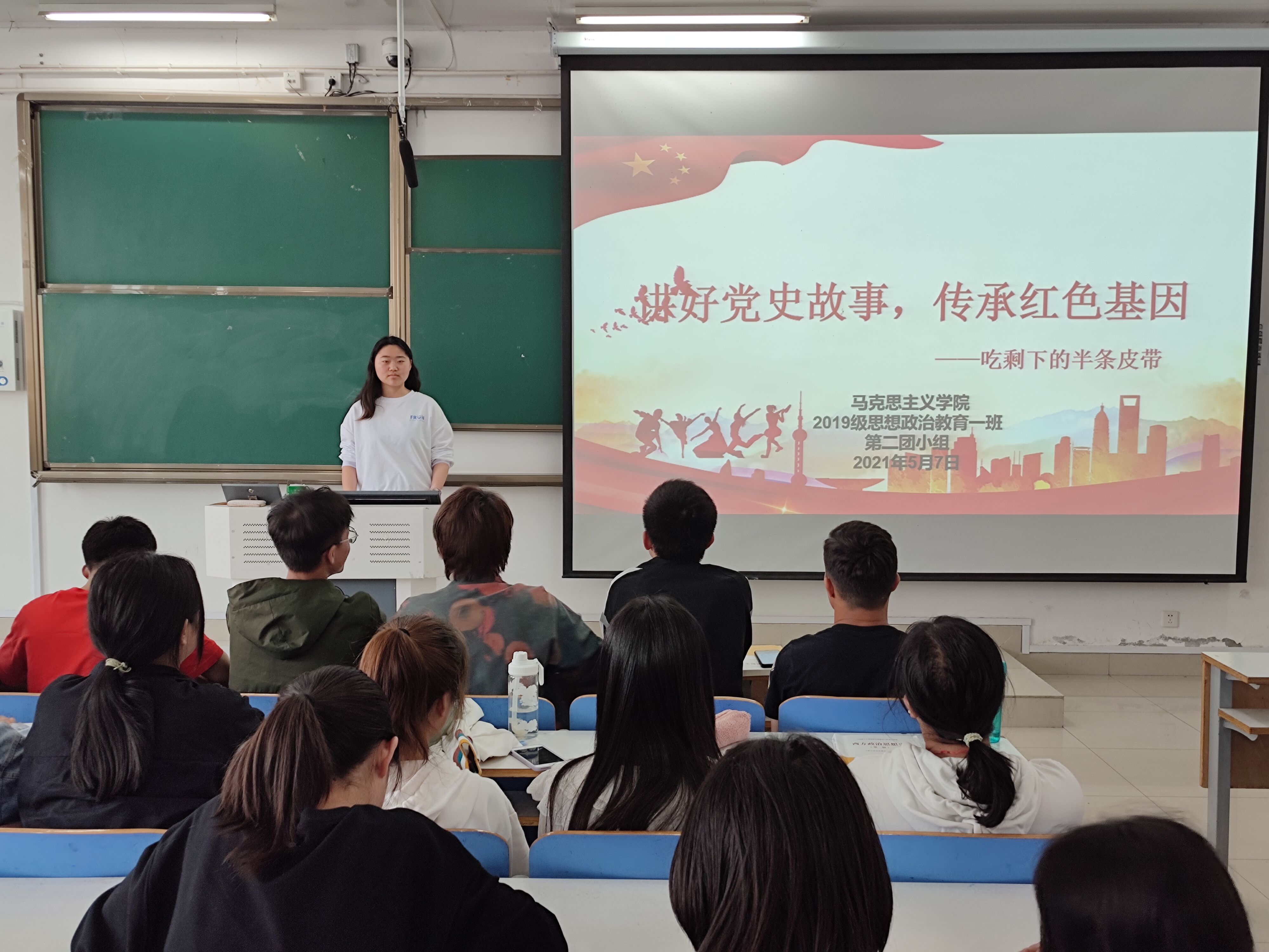 5月7日上午,太阳集团tyc5997思想政治教育一班第二团小组在社科楼516教室开展了以“讲好党史故事,传承红色基因——吃剩下的半条皮带”为主题的团小组会议。太阳集团tyc59972019级思想政治教育第一团支部第二团小组全体成员参加本次会议。会议由第二团小组组长程子硕主持。