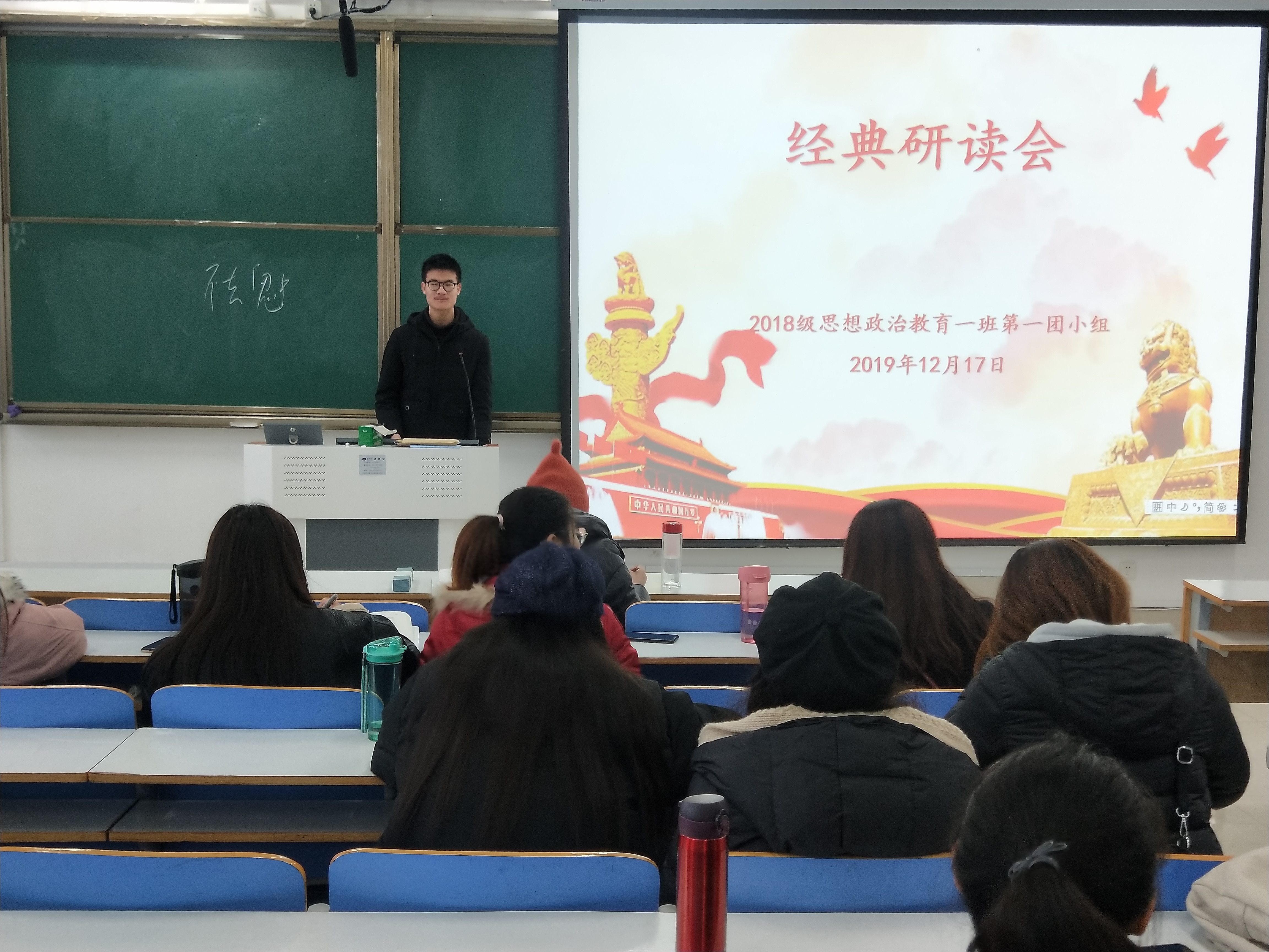 12月17日上午,太阳集团tyc59972018级思想政治一班第一团小组在社科楼514教室顺利开展“经典研读”主题团会。第一团小组全体成员共同参加此次团会。团会由团小组成员靳梦哲主持。
