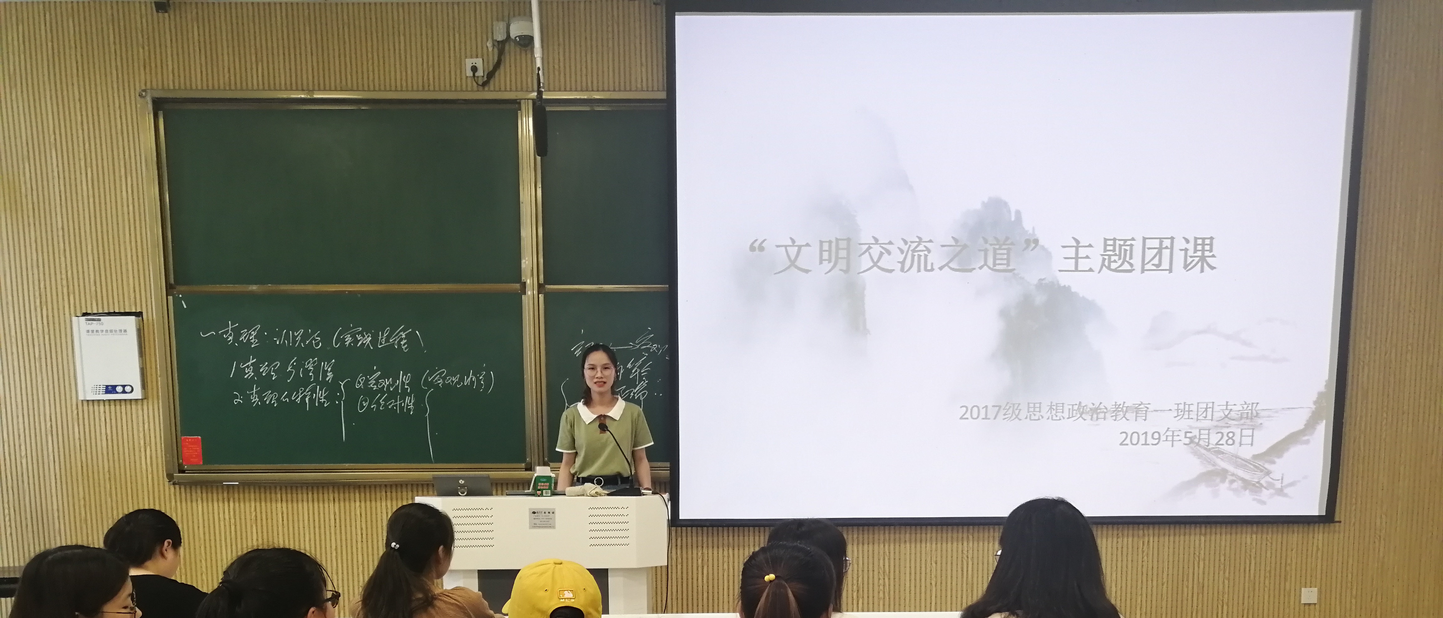 为加深同学们对亚洲文明对话大会上习近平关于文明交流思想的进一步了解,掌握文明相处相融的“中国智慧”,5月28日上午,太阳集团tyc59972017级思想政治教育一班组织开展了以“文明交流之道”为主题的班会。班会由团支书谢文静主持。
