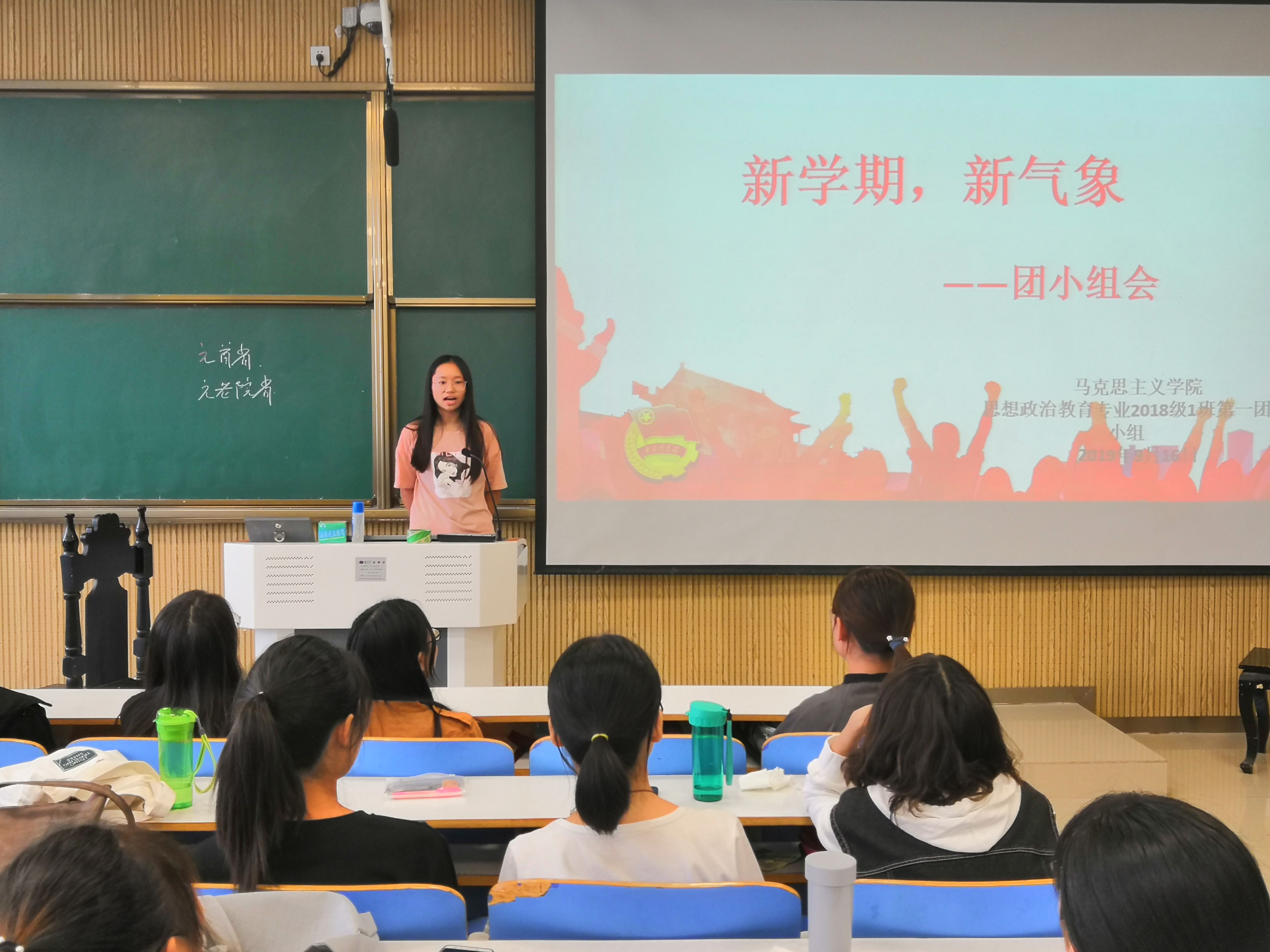 9月16日上午,太阳集团tyc59972018级思想政治教育一班在社科楼515教室顺利开展“新学期,新气象”主题团会。第一团小组全体成员共同参加此次会议。会议由小组成员刘婕主持。