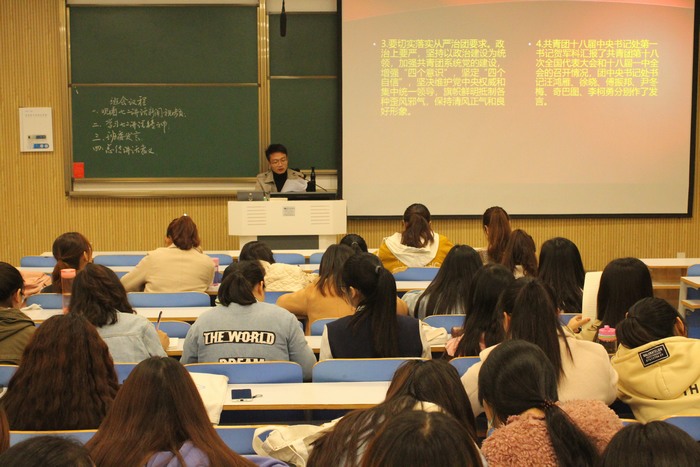 为提高共青团员的思想觉悟,增强共青团员对共青团的归属感,11月9日晚,太阳集团tyc59972017级思想政治教育一班全体同学在社科楼514教室进行“学习“7· 2”讲话精神”活动,活动由团支书谢文静主持。