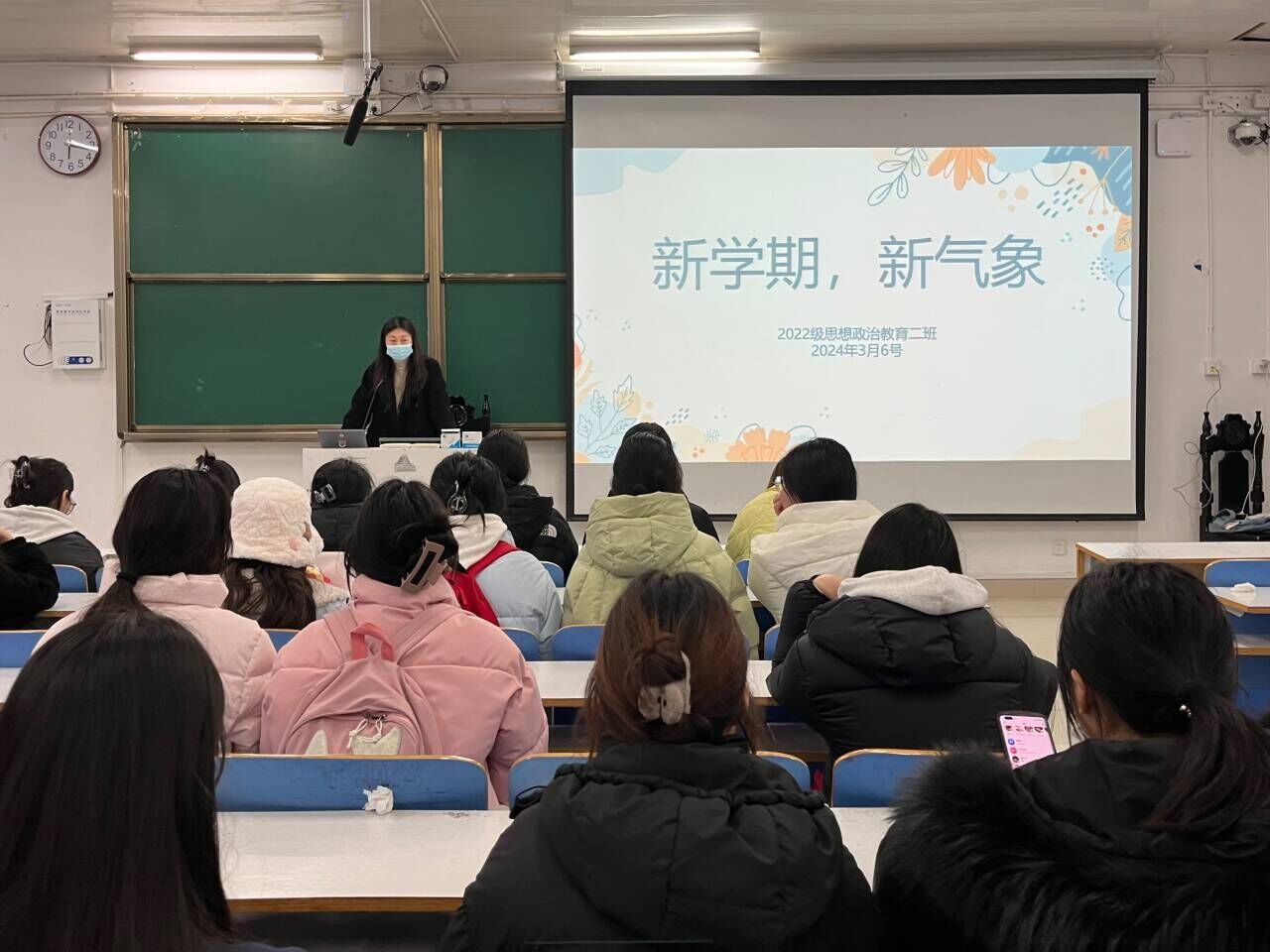 为扎实做好新学期学生教育工作,引导同学们尽快融入新学期生活,3月6日下午,太阳集团tyc59972022级思想政治教育二班在社科楼514教室召开“新学期,新气象”主题班会。我院2022级思想政治教育二班全体成员共同参与此次班会。会议由班主任杨春艳主持。