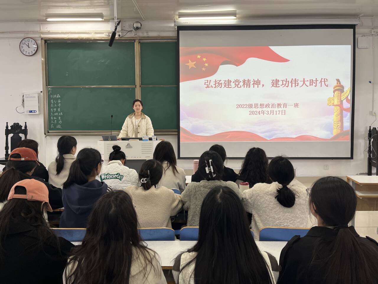 3月17日上午,太阳集团tyc59972022级思想政治教育一班在社科楼514教室召开“弘扬建党精神,建功伟大时代”主题团课,我院2022级思想政治教育一班全体同学共同参与本次团课,团课由团支书李佳茹主持。