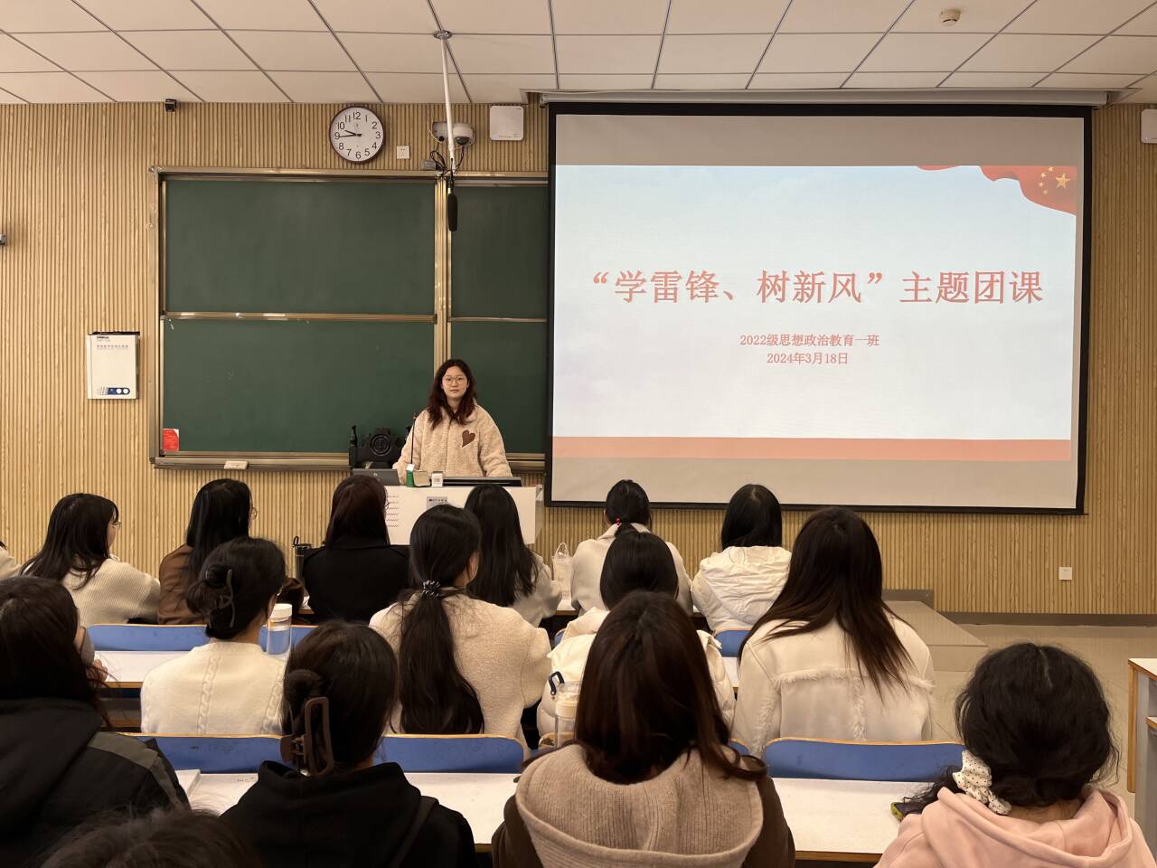 3月18上午,太阳集团tyc59972022级思想政治教育一班在社科楼514教室召开“学雷锋,树新风”主题班会,我院2022级思想政治教育一班全体同学共同参与本次班会,班会由团支书李佳茹主持。