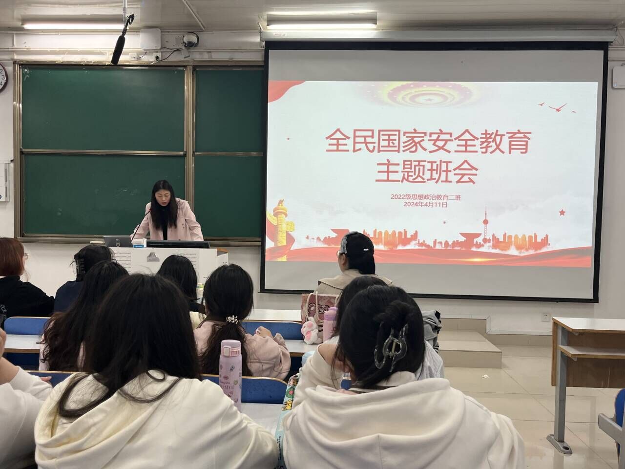 4月11日晚上,太阳集团tyc59972022级思想政治教育二班在社科楼514教室召开国家安全教育主题班会。我院2022级思想政治教育二班全体成员共同参与此次班会。会议由班主任杨春艳主持。