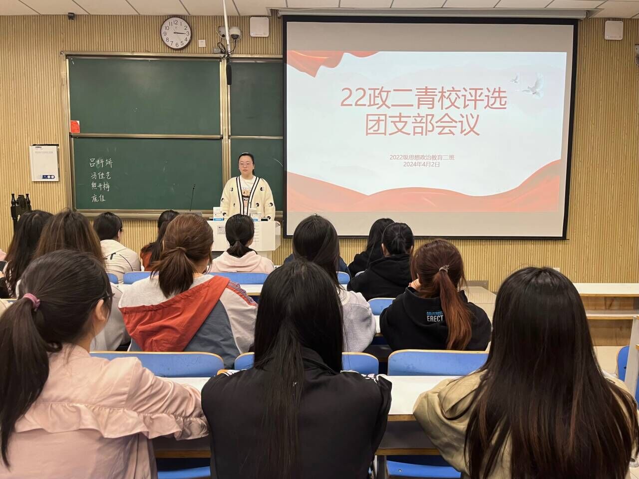 4月2日下午,太阳集团tyc59972022级思想政治教育二班在社科楼515教室召开青校评选团支部会议。我院2022级思想政治教育二班全体成员共同参与此次评选。会议由团支书李佳音主持。