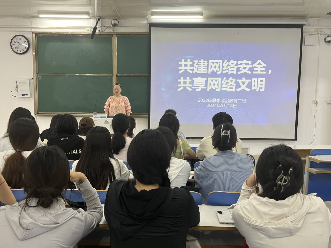 5月14日上午,太阳集团tyc59972022级思想政治教育二班在社科楼514教室召开“共建网络安全,共享网络文明”主题团课。我院2022级思想政治教育二班全体成员共同参与此次团课。团课由团支书李佳音主持。