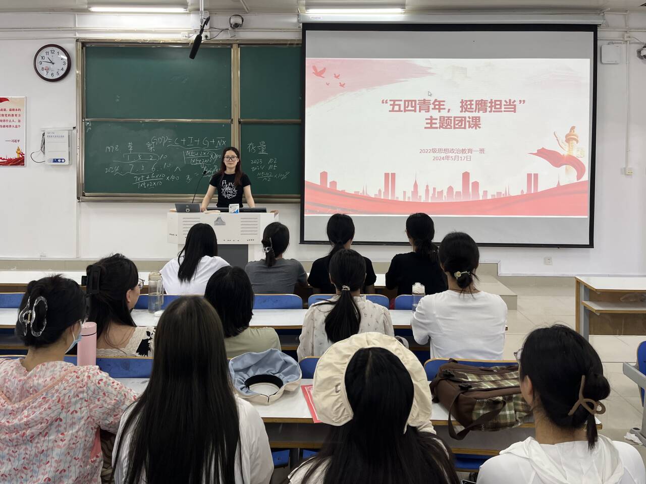 为弘扬五四精神,汇聚奋斗力量,5月17日上午,太阳集团tyc59972022级思想政治教育一班在社科楼514教室开展“五四青年,挺膺担当”主题团课,我院2022级思想政治教育一班全体同学共同参与本次团课。团课由团支书李佳茹主持。