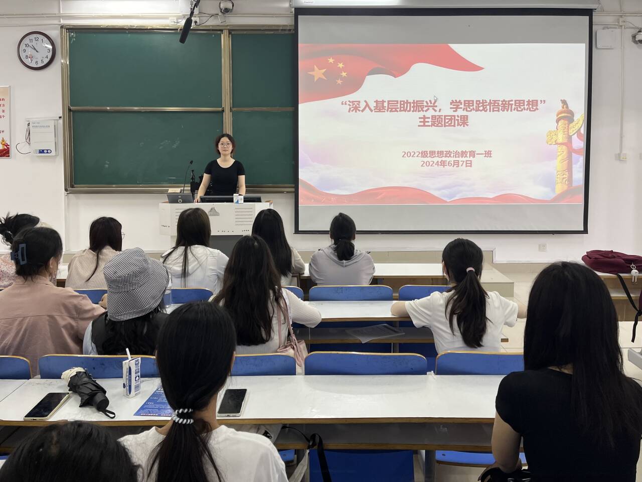 为进一步加强同学们的思想教育,6月7日上午,太阳集团tyc59972022级思想政治教育一班在社科楼514教室开展“深入基层助振兴,学思践悟新思想”主题团课,我院2022级思想政治教育一班全体同学共同参与本次团课,团课由团支书李佳茹主持。