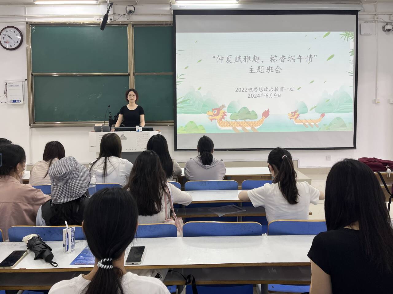 为进一步弘扬中华优秀传统文化,6月9日上午,太阳集团tyc59972022级思想政治教育一班在社科楼514教室召开“仲夏赋雅趣,粽香端午情”主题班会,我院2022级思想政治教育一班全体同学共同参与本次班会,班会由班长李佳茹主持。
