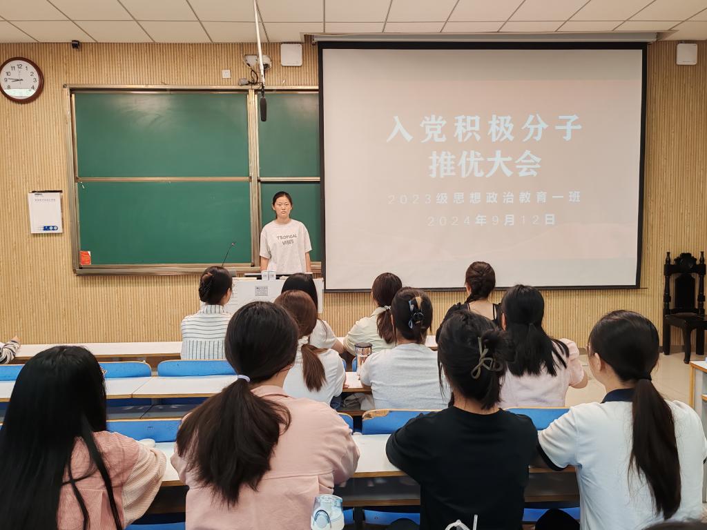 为使支部团员积极向党组织靠拢,深刻学习党的思想,加强支部团员的积极性,向党组织输送新鲜血液,9月12日上午,太阳集团tyc59972023级思想政治教育一班团支部在社科楼515教室召开入党积极分子推优大会。2023级思想政治教育一班全体团员出席本次大会,大会由团支书张卓主持。