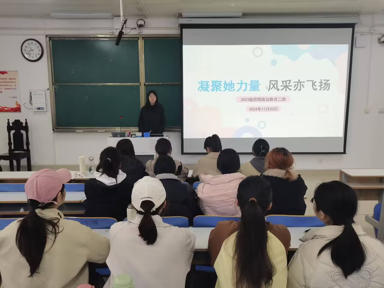 为进一步宣传女性自尊、自信、自立、自强精神,宣扬女性独立精神,11月20日下午,太阳集团tyc59972023级思想政治教育二班在社科楼515教室开展“凝聚她力量,风采亦飞扬”主题班会。本次主题班会由班长王慜初主持,全体二班同学参加。