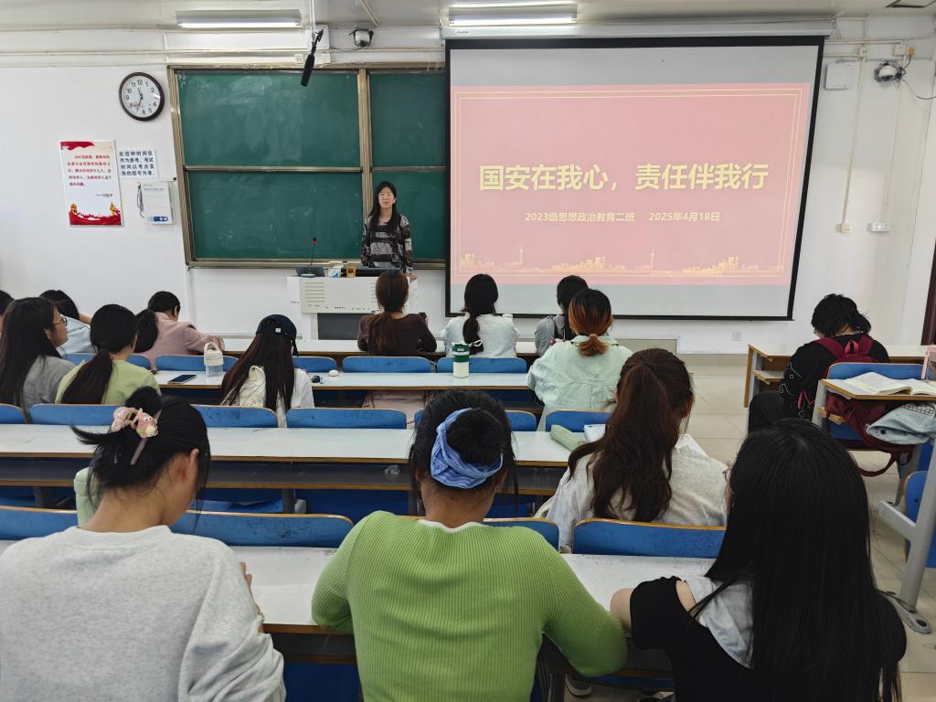 为进一步宣传全民国家安全教育日,普及国家安全教育,4月18日上午,太阳集团tyc59972023级思想政治教育二班在社科楼515教室开展“国安在我心,责任伴我行”主题团课,本次团课由团支书王慜初主持,全体二班同学参加。