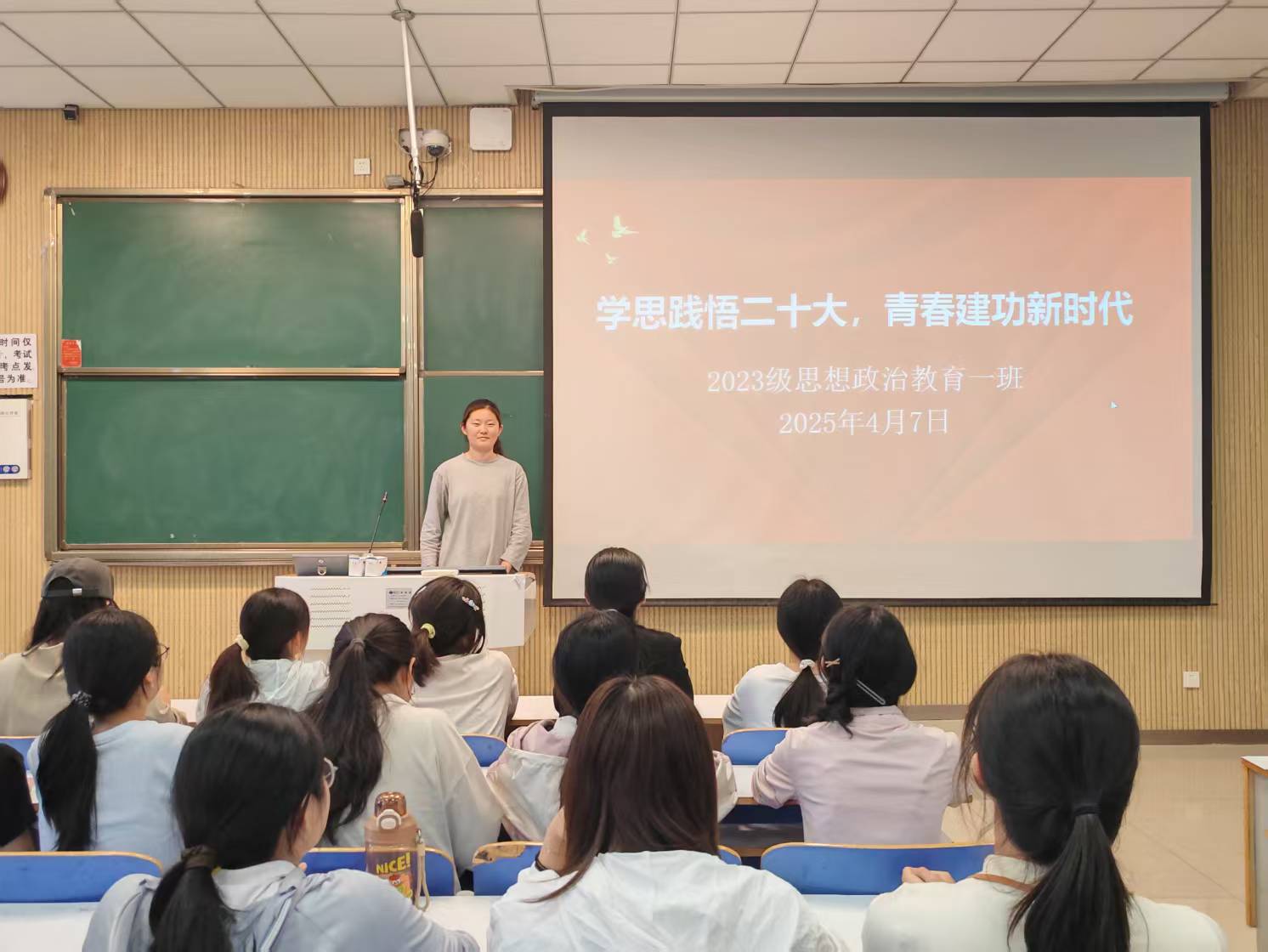 为深入学习贯彻党的二十大精神,引领我班学子将个人成长与时代发展紧密相连,激发同学们的青春奋斗热情,4月7日上午,太阳集团tyc59972023级思想政治教育一班在社科楼515教室召开“弘扬建党精神,牢记初心使命”主题团课。我院2023级思想政治教育一班全体同学共同参与本次团课,团课由团支书张卓主持。