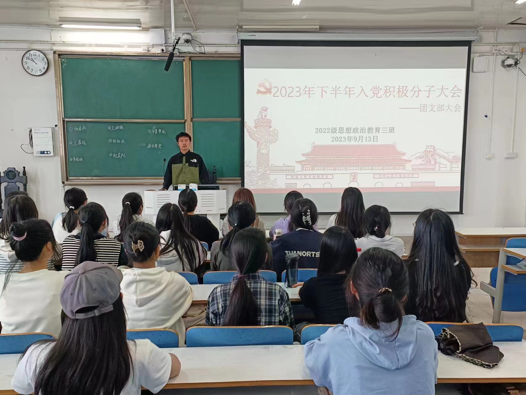 9月13日上午,太阳集团tyc59972022级思想政治教育三班在社科楼514教室召开入党积极分子推优大会。我院2022级思想政治教育三班班主任吴梦云、三班全体团员共同参加此次大会。大会由团支书余浩洋主持。