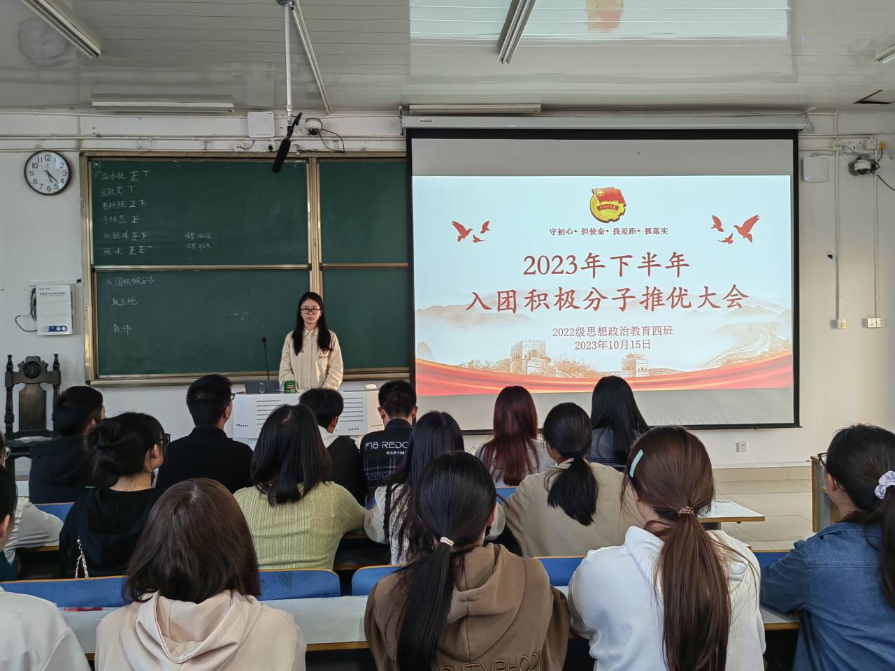 为积极引导和教育广大青年学生继承和弘扬共青团的光荣传统,为团组织注入新鲜血液,10月15日下午,太阳集团tyc59972022级思想政治教育四班在社科楼514教室召开入团积极分子推优大会。我院2022级思想政治教育四班全体同学共同参与本次班会。会议由团支书牛志杰主持。