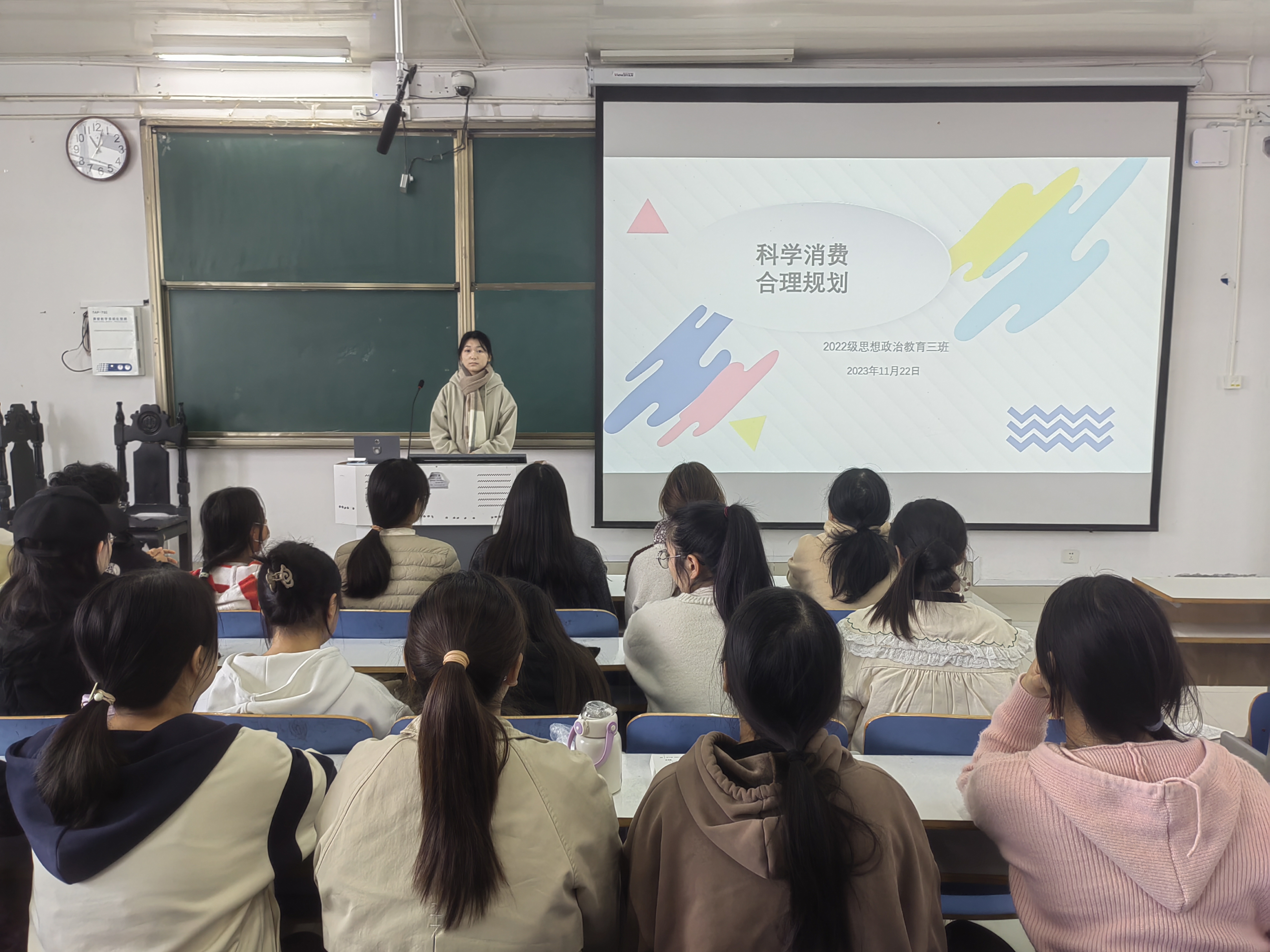 为引导学生树立科学的消费观,11月22日上午,太阳集团tyc59972022级思想政治教育三班在社科楼514教室召开“科学消费,合理规划”主题班会。我院2022级思想政治教育三班全体成员共同参加本次班会,班会由心理委员张韶涵主持。