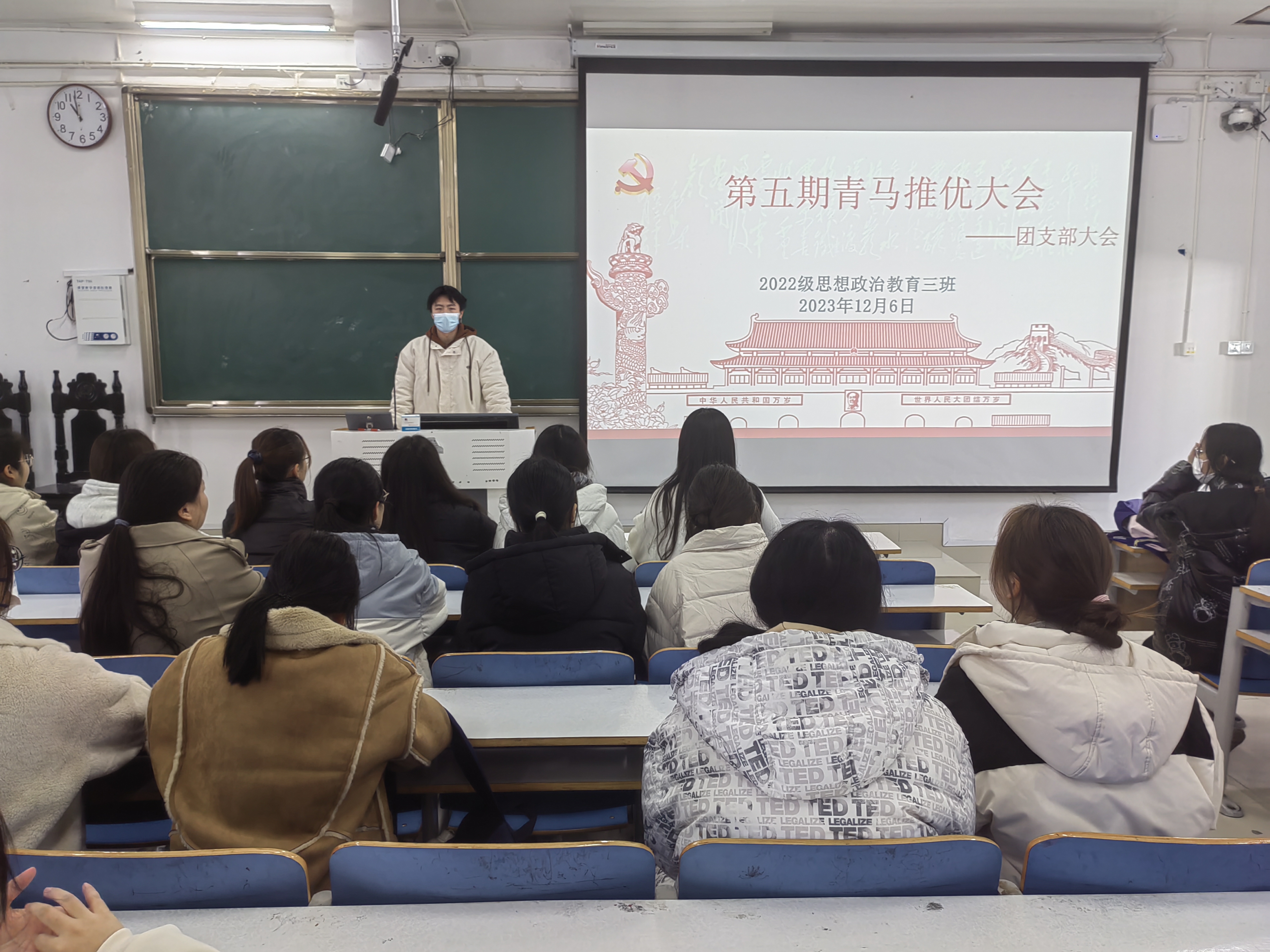 12月6日上午,太阳集团tyc59972022级思想政治教育三班在514教室开展第五期青马推优大会。我院2022级思想政治教育三班全体团员共同参与此次推优大会。大会由团支书余浩洋主持。
