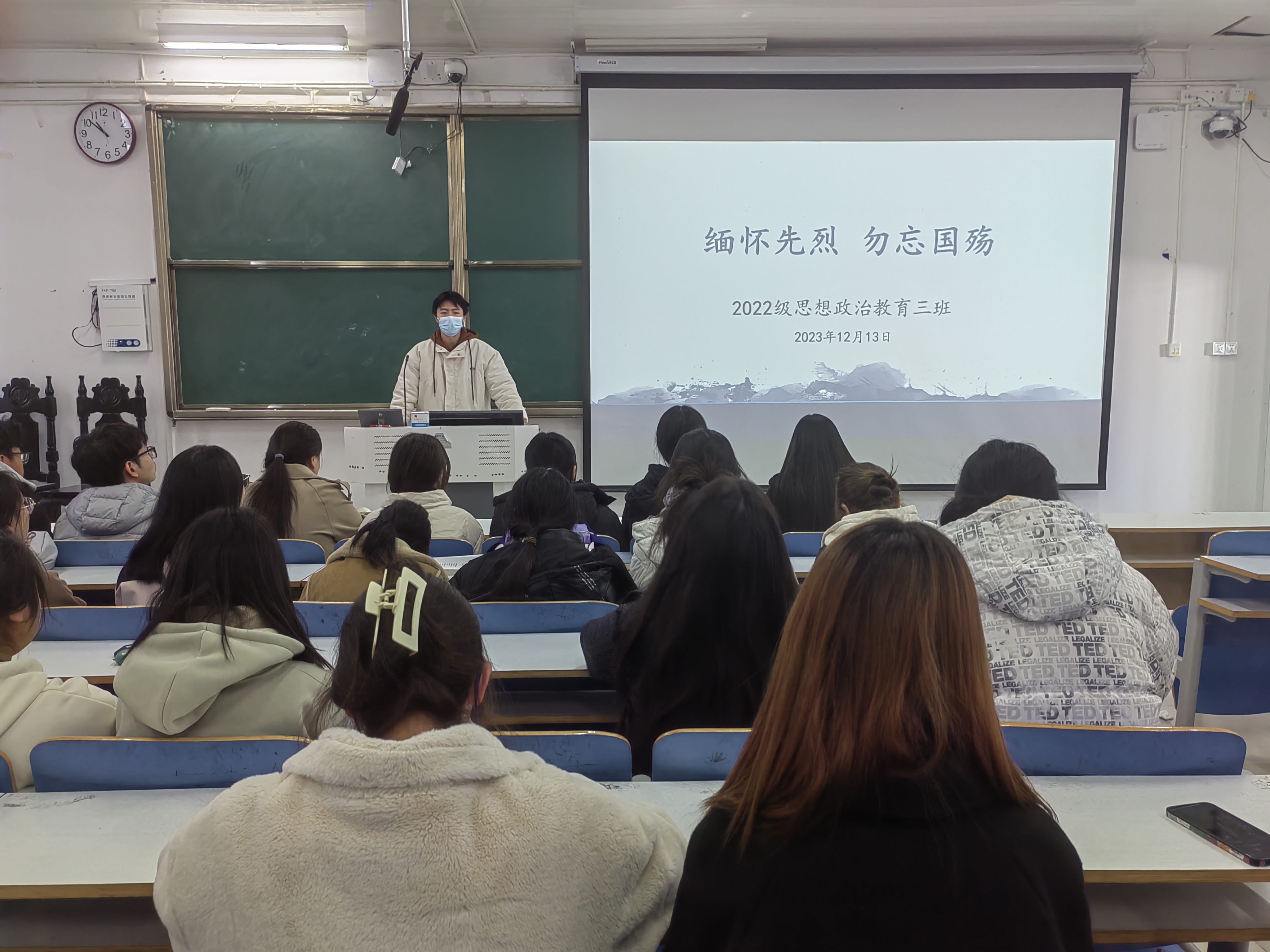 继承先烈遗志,砥砺奋斗青春。12月13日上午,太阳集团tyc59972022级思想政治教育三班在社科楼514教室召开“缅怀先烈,勿忘国殇”主题团课。我院2022级思想政治教育三班全体成员共同参与本次团课。团课由团支书余浩洋主持。