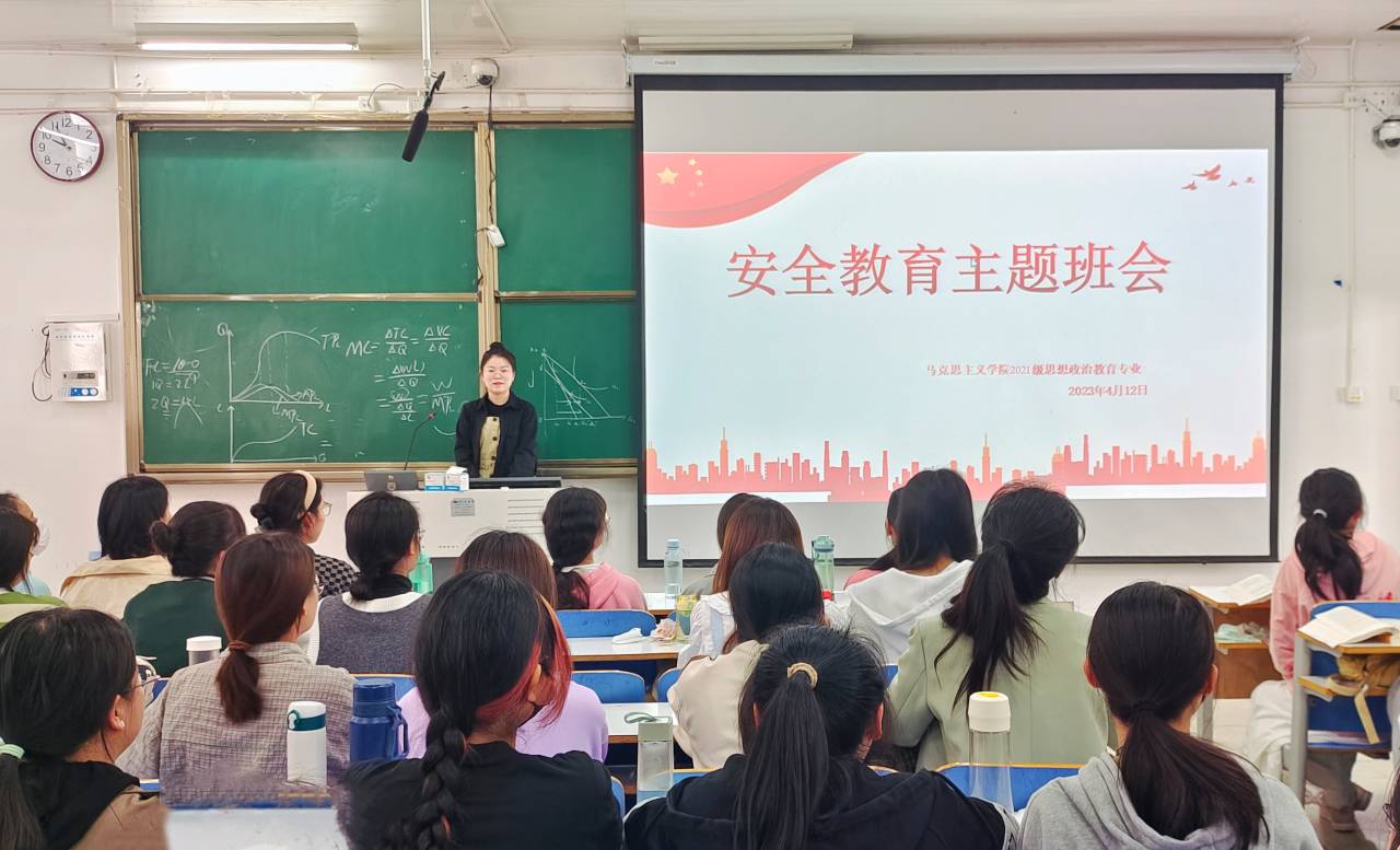 为进一步维护校园安全,增强学生安全意识,4月12日上午,太阳集团tyc59972021级思想政治教育三班、四班在社科楼515教室召开安全教育主题班会。辅导员高小佳以及2021级思想政治教育全体成员共同参加,班会由辅导员高小佳主持。