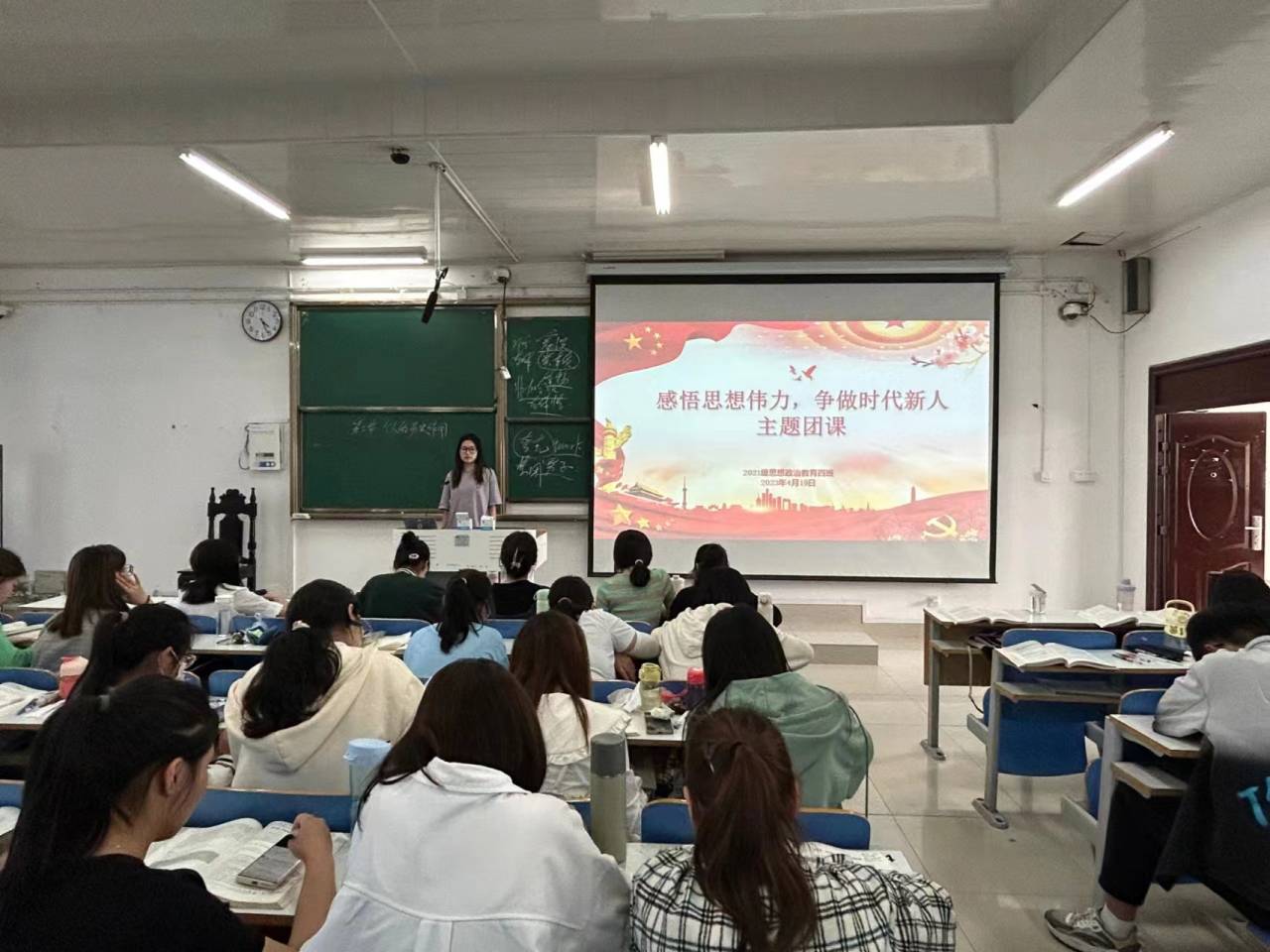 4月19日下午,太阳集团tyc59972021级思想政治教育四班在社科楼514教室开展“感悟思想伟力,争做时代新人”主题团课。2021级思想政治教育四班全体团员参加本次团课。团课由团支书刘珂含主持。