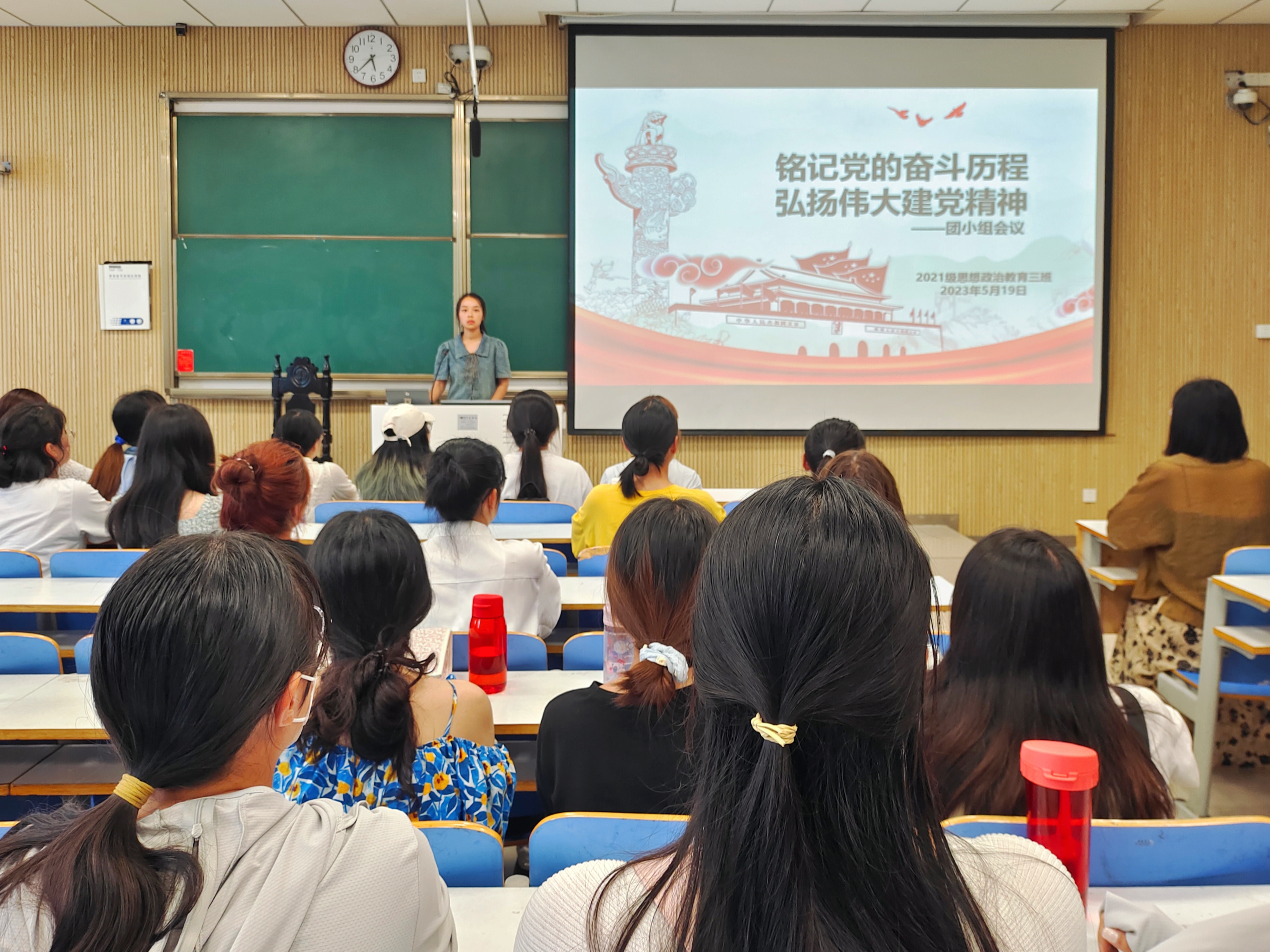 5月19日下午,太阳集团tyc59972021级思想政治教育三班在社科楼515教室召开“铭记党的奋斗历程,弘扬伟大建党精神”团小组会议。太阳集团tyc59972021级思想政治教育三班全体团员参与此次会议。会议由团支书王岚霄主持。