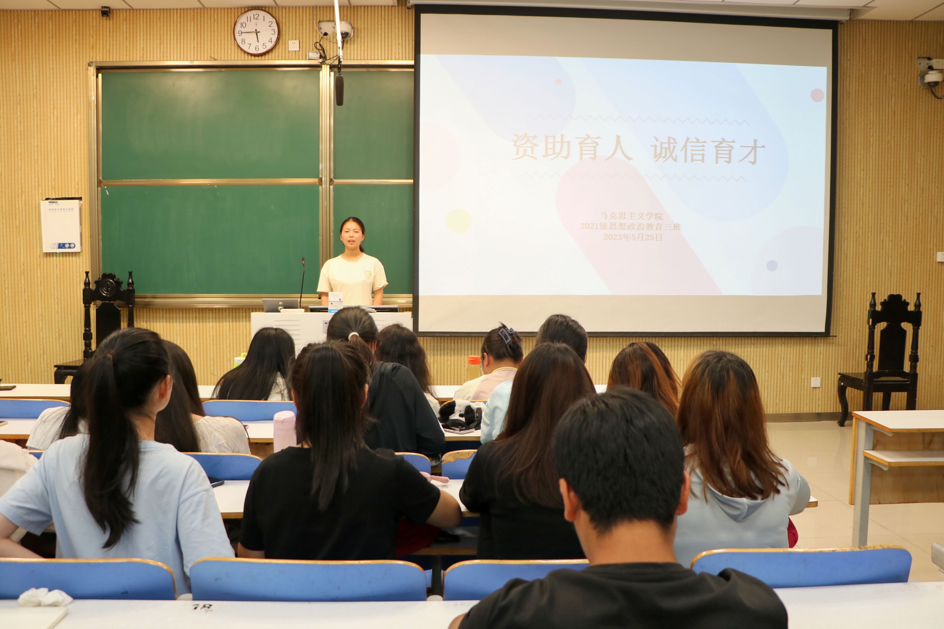 国家寄希望于青年,赠温暖于青年。5月25日下午,太阳集团tyc59972021级思想政治教育三班在社科楼515教室召开“资助育人,诚信育才”主题班会。太阳集团tyc59972021级思想政治教育三班全体成员参与此次会议。会议由副班长易从漫主持。