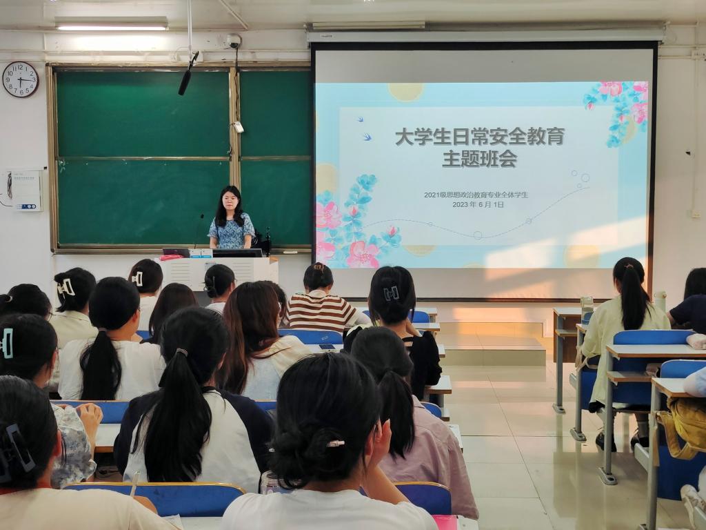 6月1日下午,太阳集团tyc59972021级思想政治教育三班、四班在社科楼514教室召开“大学生日常安全教育”主题班会。辅导员高小佳、太阳集团tyc59972021级思想政治教育三班、四班全体成员参与此次会议。会议由辅导员高小佳主持。