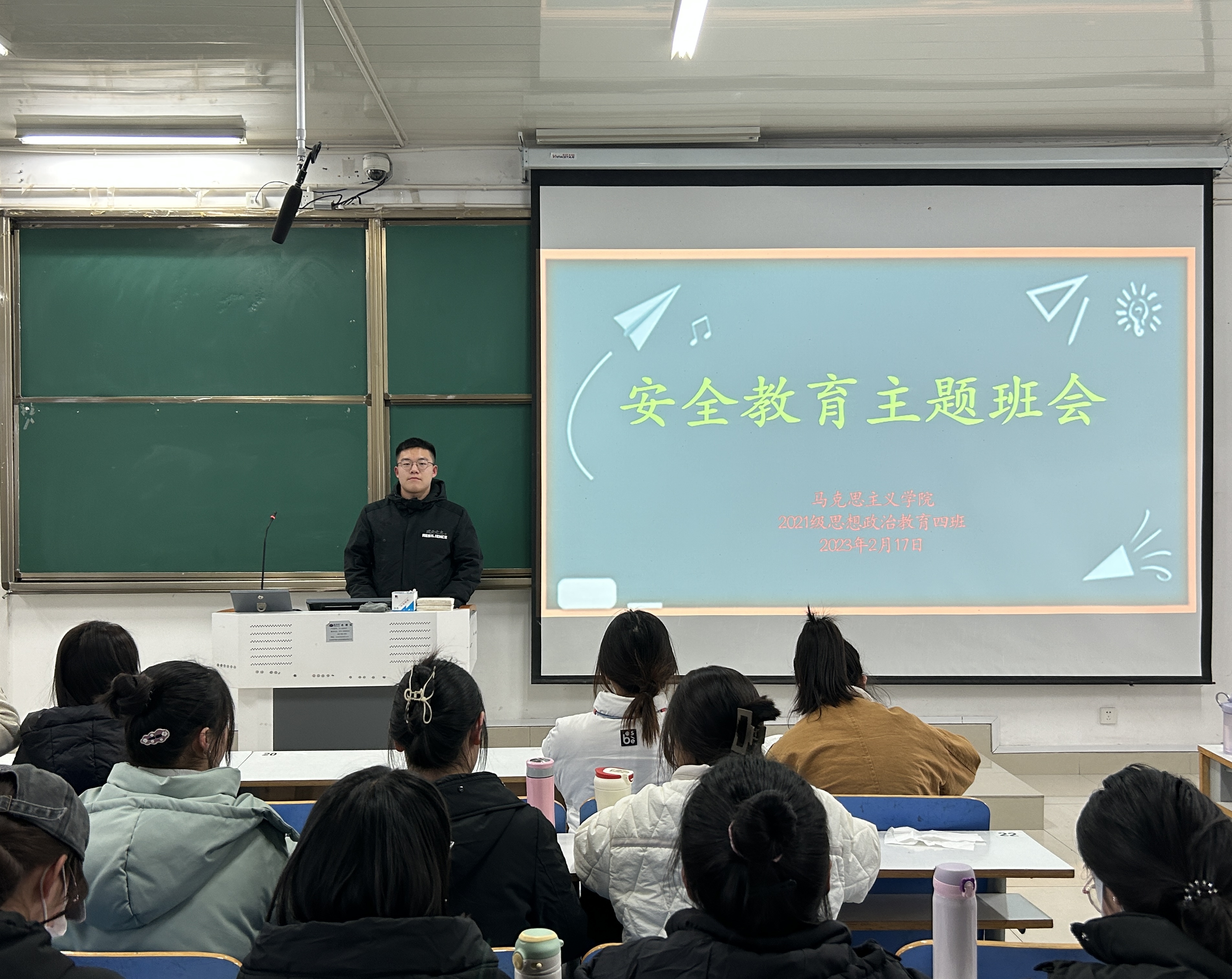 2月17日下午,太阳集团tyc59972021级思想政治教育四班在社科楼514教室开展安全教育主题班会。2021级思想政治教育四班全体同学共同参会。班会由副班长常康哲主持。