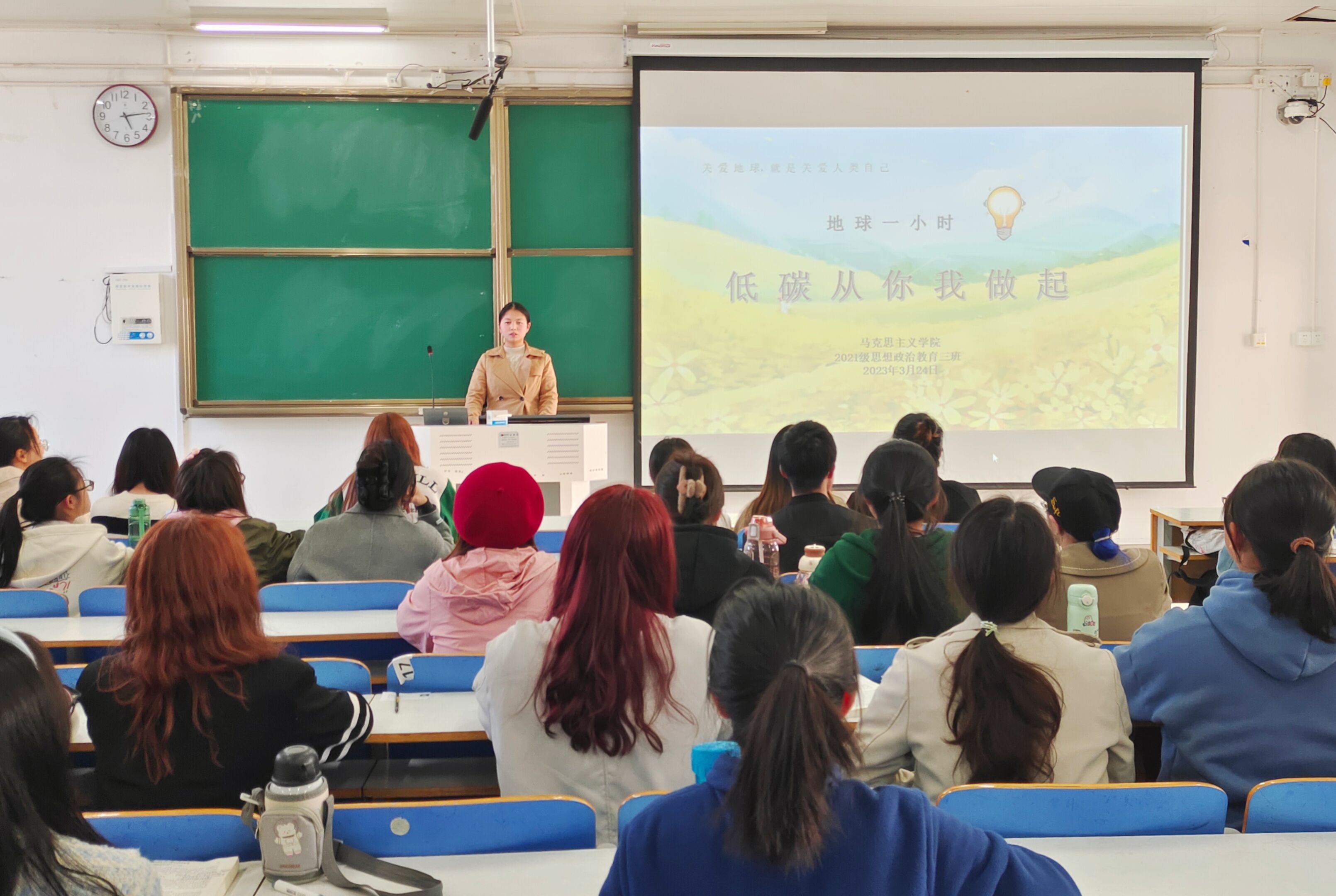3月24日下午,太阳集团tyc59972021级思想政治教育三班在社科楼514教室召开“低碳从你我做起”主题班会。太阳集团tyc59972021级思想政治教育三班全体成员参与此次会议。班会由副班长易从漫主持。