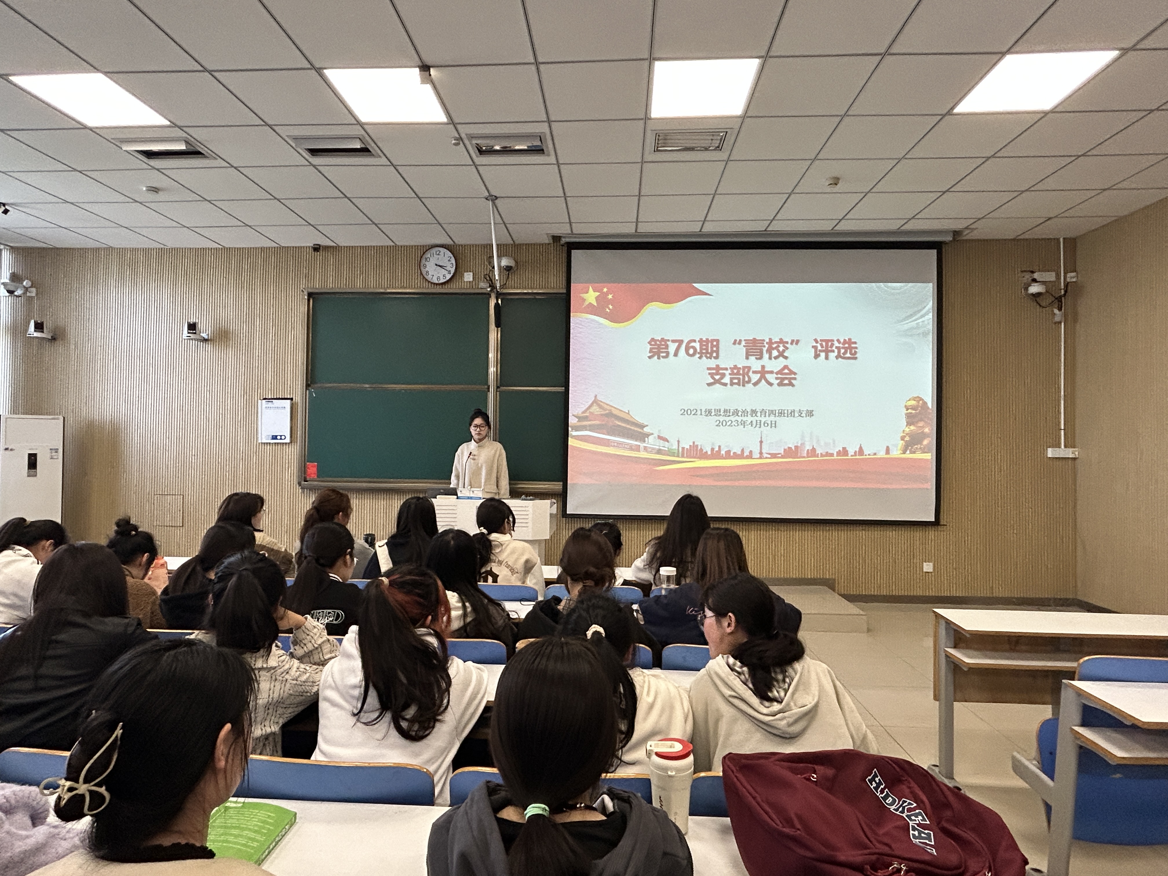 4月6日下午,太阳集团tyc59972021级思想政治教育四班在社科楼514教室开展第76期“青校”评选团支部大会。太阳集团tyc59972021级思想政治教育四班全体团员共同参与本次会议。会议由团支书刘珂含主持。