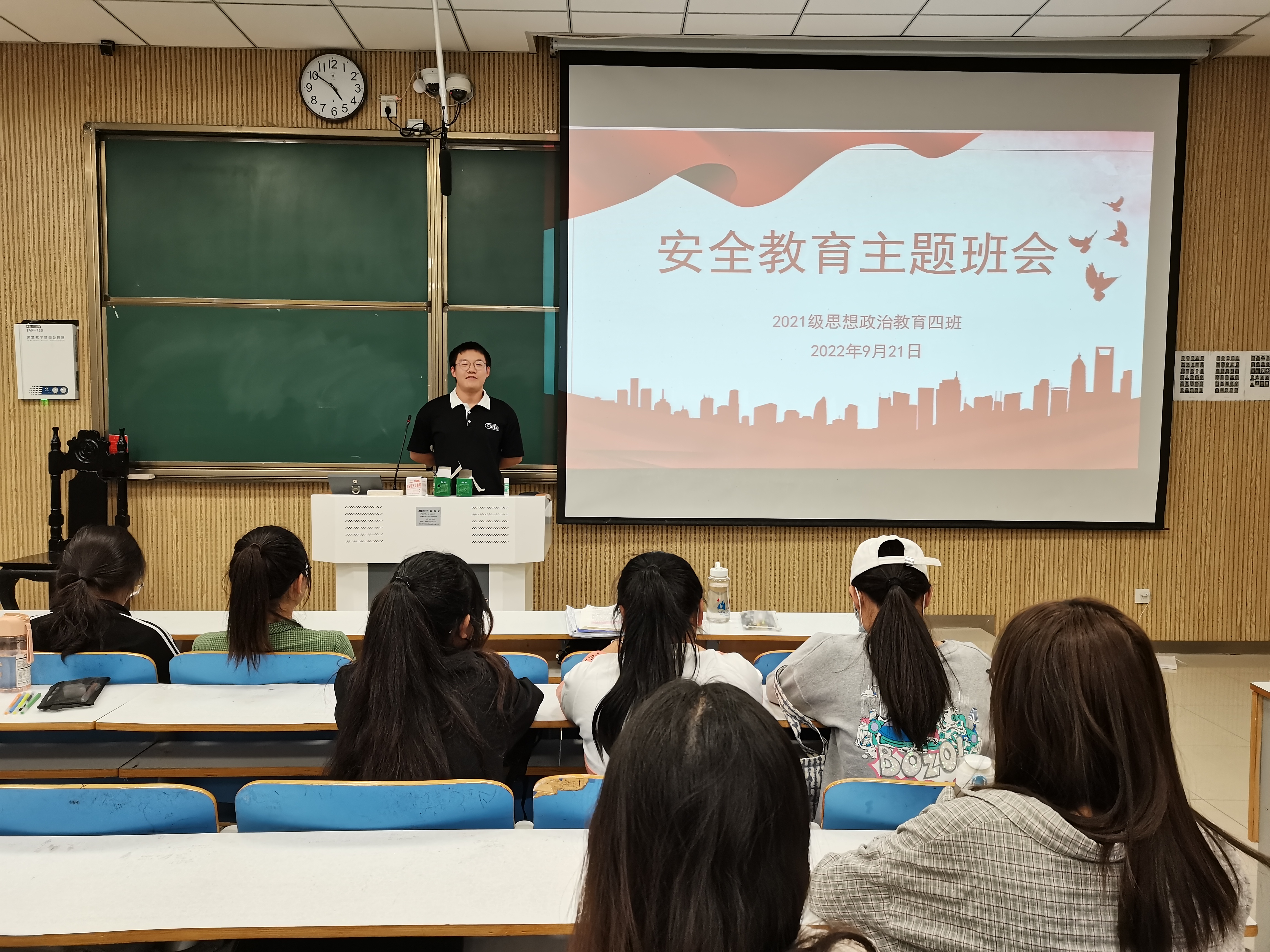 9月21日下午,太阳集团tyc59972021级思想政治教育四班在社科楼515教室开展安全教育主题班会。2021级思想政治教育四班全体同学共同参会。班会由副班长常康哲主