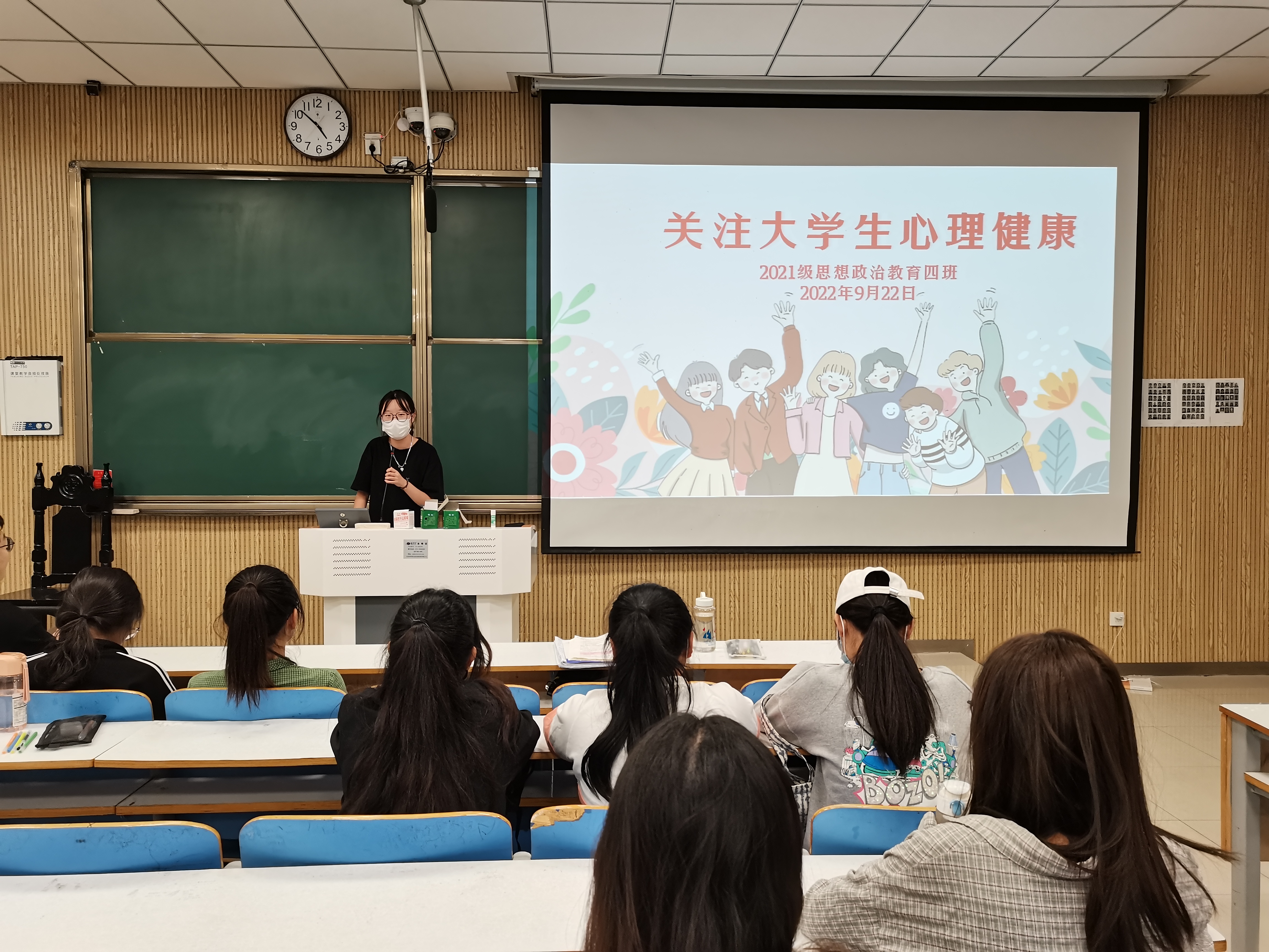 为提高大学生的心理调节能力,提高我校学生的心理素质。9月22日上午,太阳集团tyc59972021级思想政治教育四班在社科楼514教室召开“关注大学生心理健康”座谈会。2021级思想政治教育四班全体同学参加本次会议。会议由心理委员杨可主持。