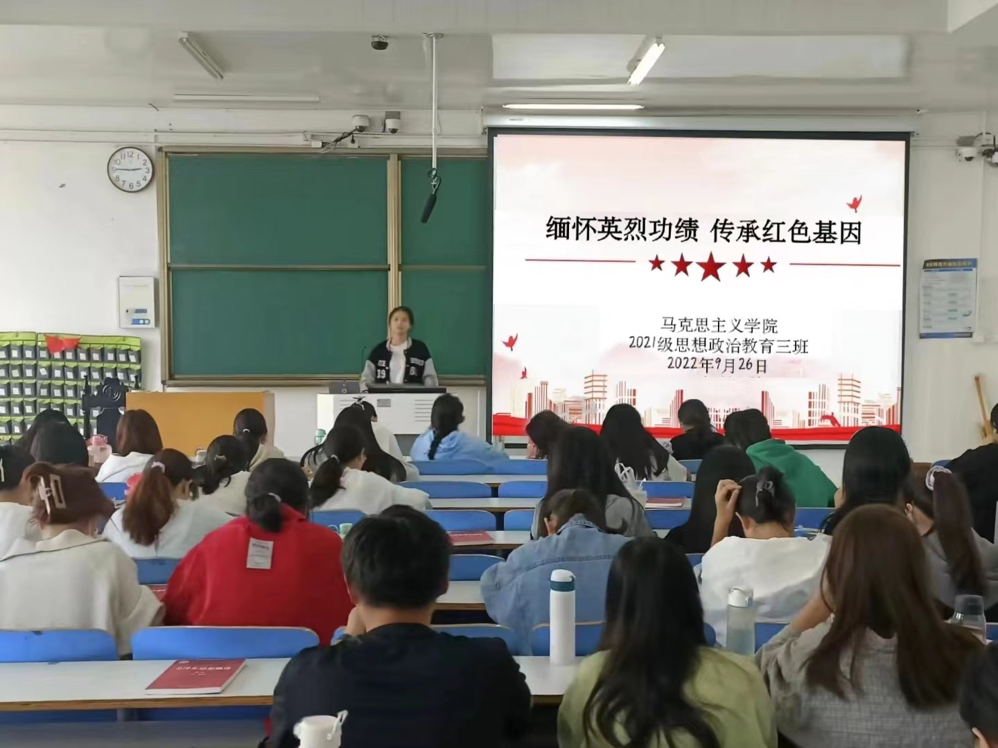 9月30日下午,太阳集团tyc59972021级思想政治教育三班在社科楼514召开“缅怀英烈功绩,传承红色基因”主题班会。2021级思想政治教育三班全体成员参与此次会议。会议由班长易从漫主持。