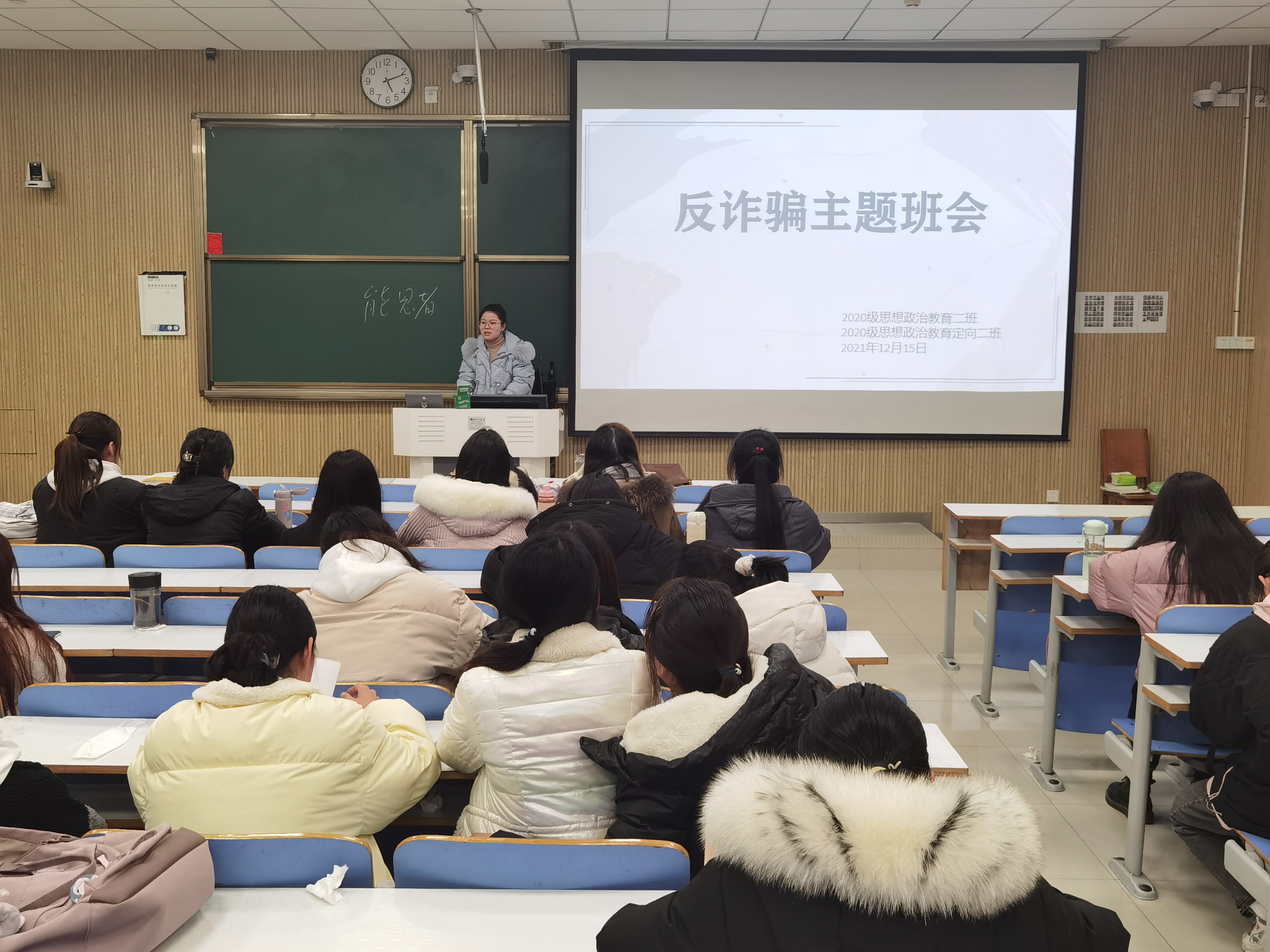 为提高学生的安全防范意识,切实保护学生的人身财产安全,12月15日下午,太阳集团tyc59972020级思想政治教育二班、定向二班在社科楼515教室召开“反诈骗”和“宿舍安全”教育主题班会。辅导员高小佳及2020级思想政治教育二班、定向二班全体同学共同参与本次班会。班会由辅导员高小佳主持。