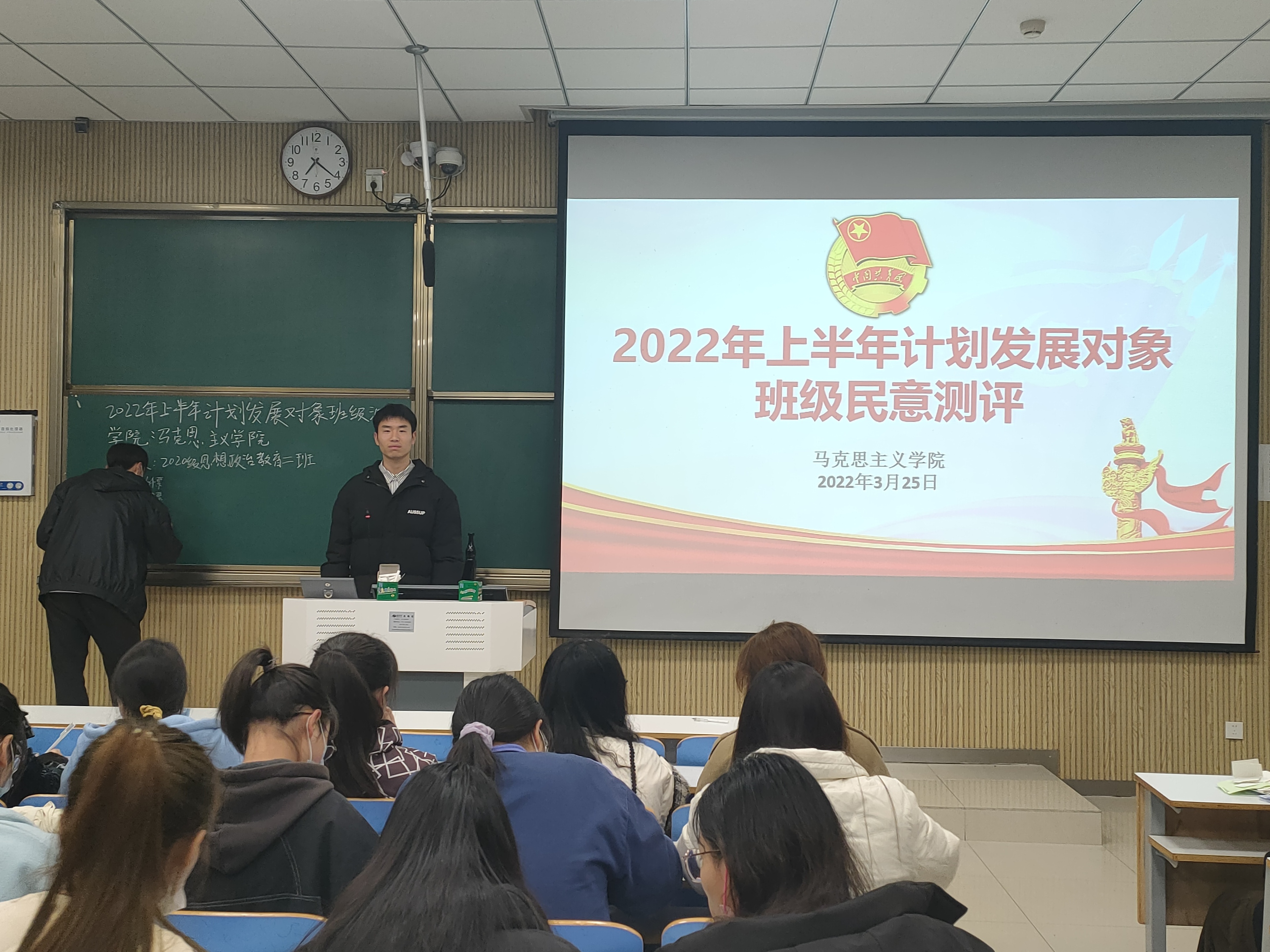 3月25日晚,太阳集团tyc59972020级思想政治教育定向二班团支部在社科楼515教室召开2022年上半年计划发展对象班级民意测评会议。2020级思想政治教育定向二班全体团员共同参会。