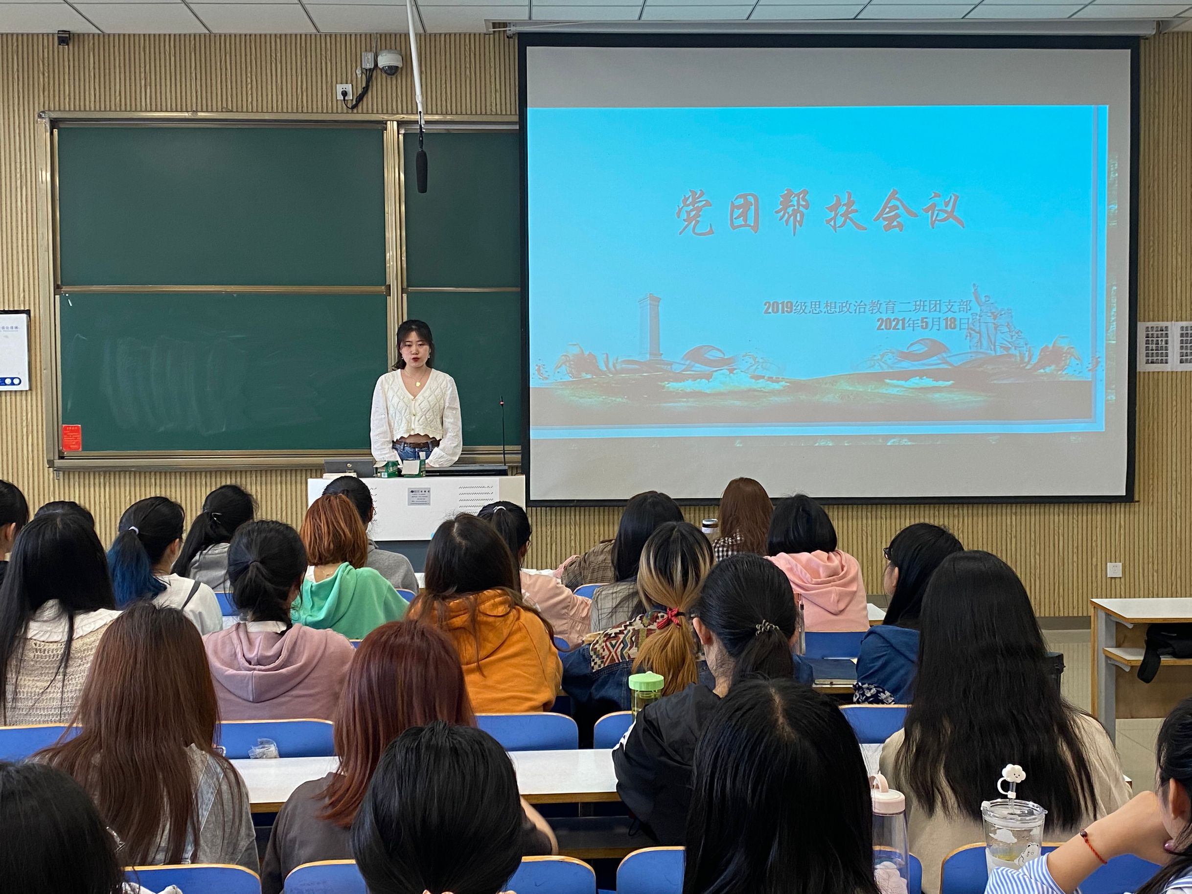 5月18日上午,太阳集团tyc59972019级思想政治教育二班于社科楼515教室顺利开展党团帮扶活动。我院预备党员姜雨杭及我班全体成员共同参加了本次活动。活动由团支书孙雅娴主持。