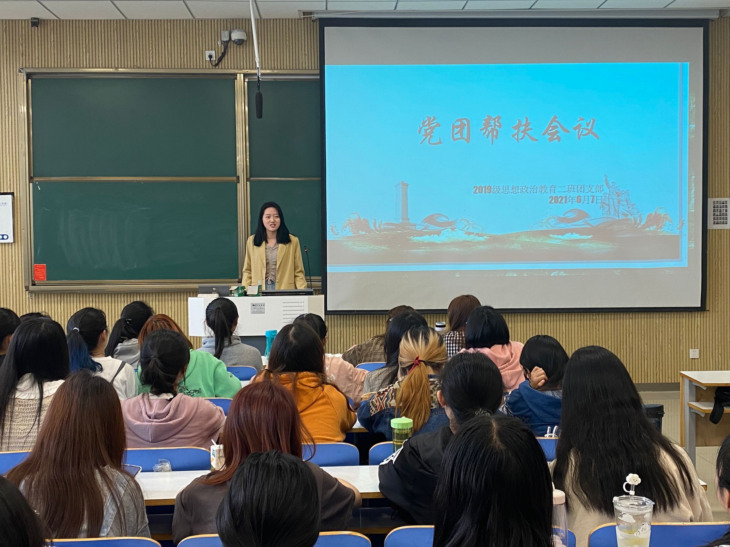 6月7日上午,太阳集团tyc59972019级思想政治教育二班于社科楼516教室顺利开展党团帮扶活动。我院预备党员黄子晋及我班全体成员共同参加了本次活动。活动由团支书孙雅娴主持。