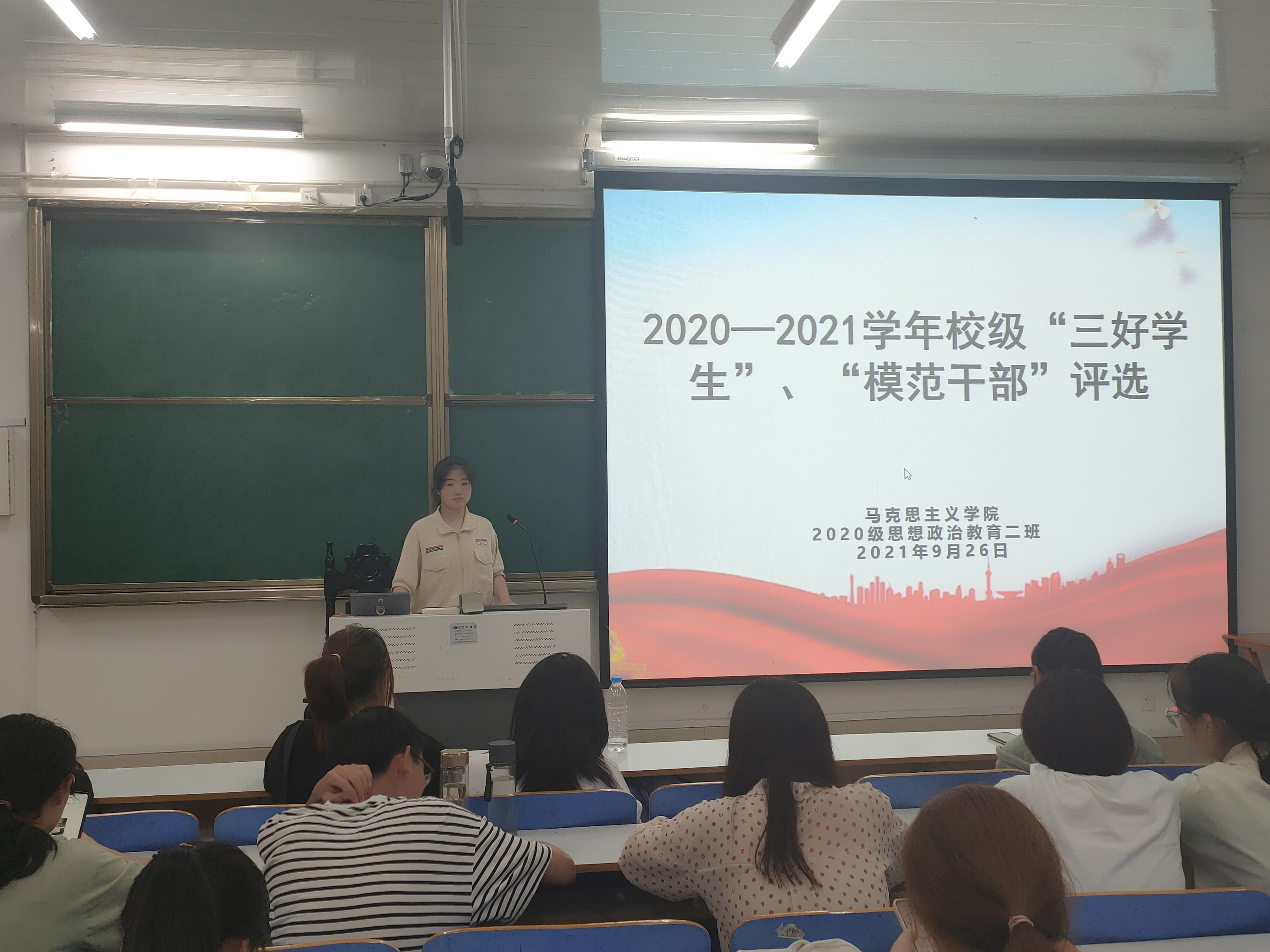 9月26日晚上,太阳集团tyc59972020级思想政治教育二班“三好学生”“模范干部”评选会在社科楼514教室顺利召开。二班全体同学参与本次会议。会议由班长孙雪主持。