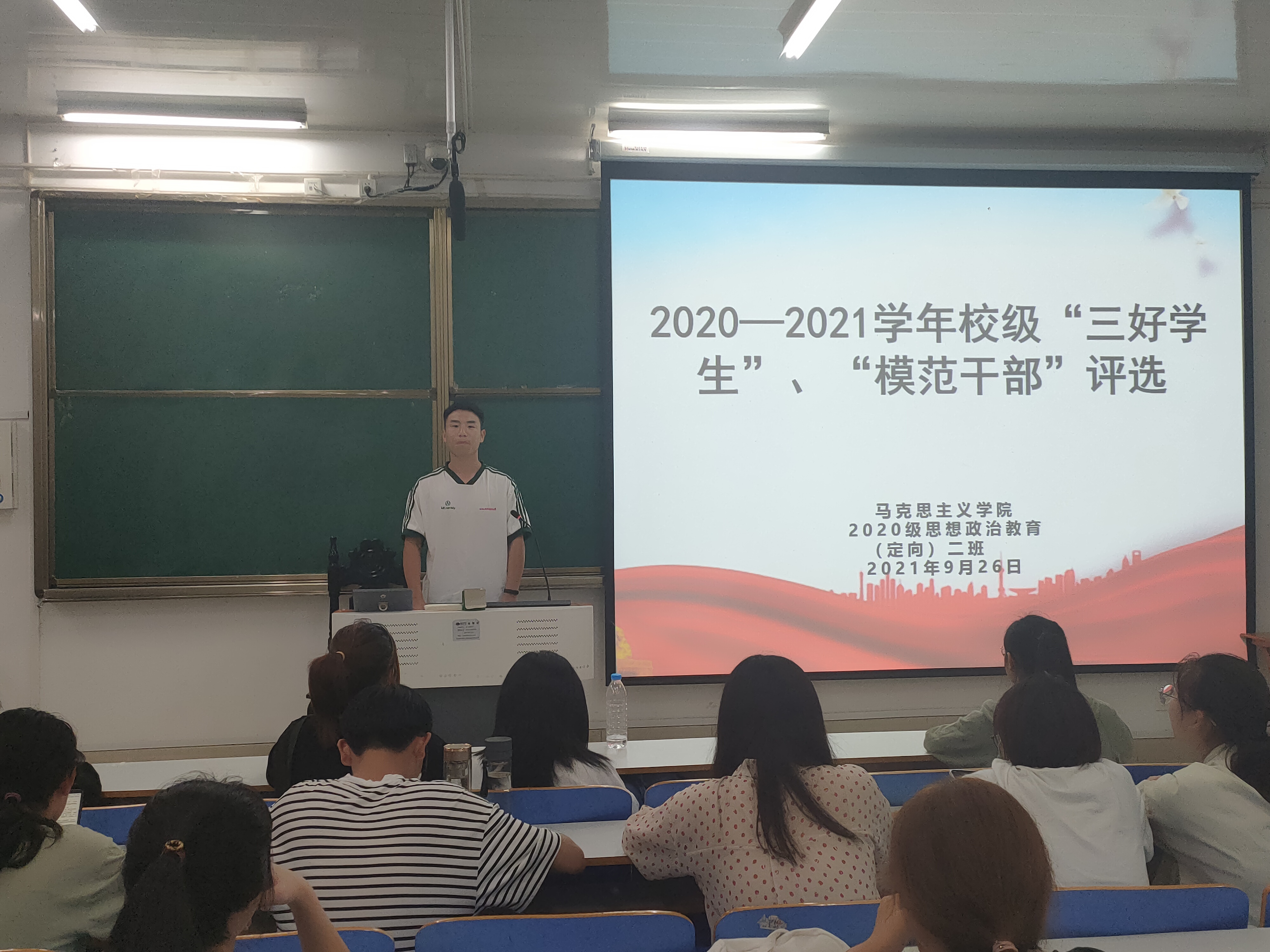9月26日晚上,太阳集团tyc59972020级思想政治教育定向二班“三好学生”“模范干部”评选会在社科楼514教室顺利召开。定向二班全体同学参与本次会议。