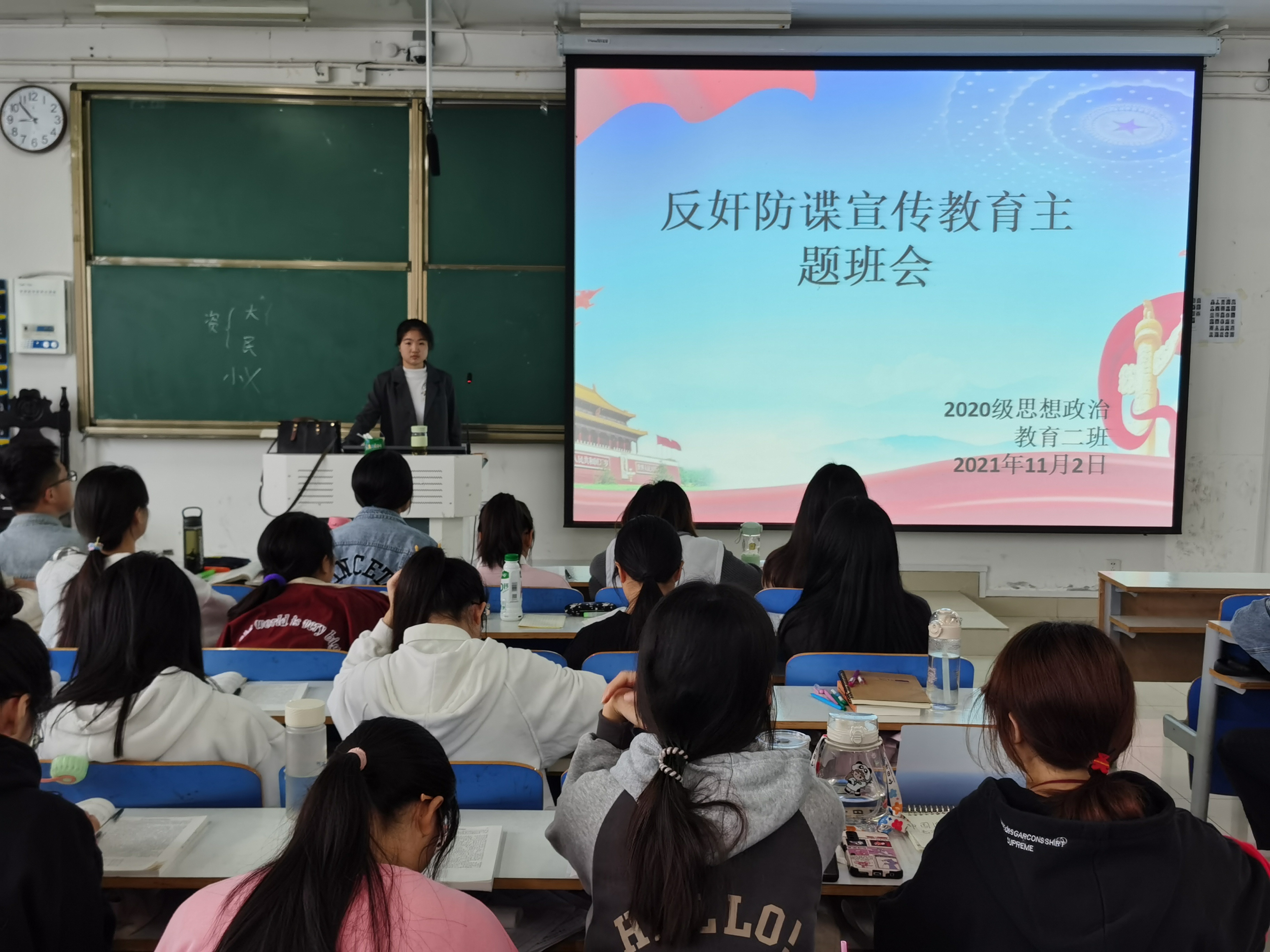 为进一步增强同学们的国家安全意识,11月2日上午,太阳集团tyc59972020级思想政治教育二班、定向二班在社科楼516教室召开“反奸防谍”宣传教育主题班会。2020级思想政治教育二班、定向二班全体同学共同参与本次班会。班会由副班长孙雪主持。