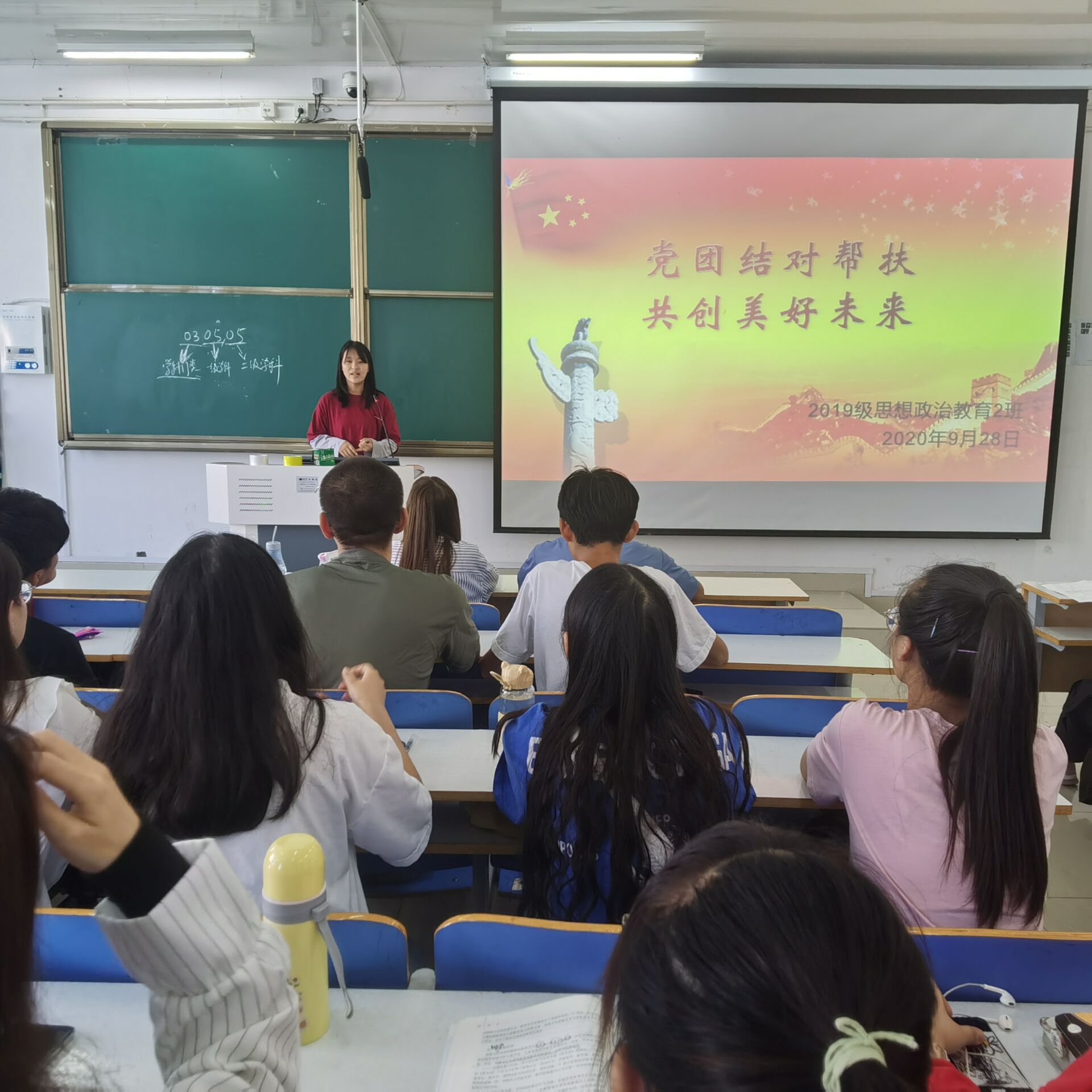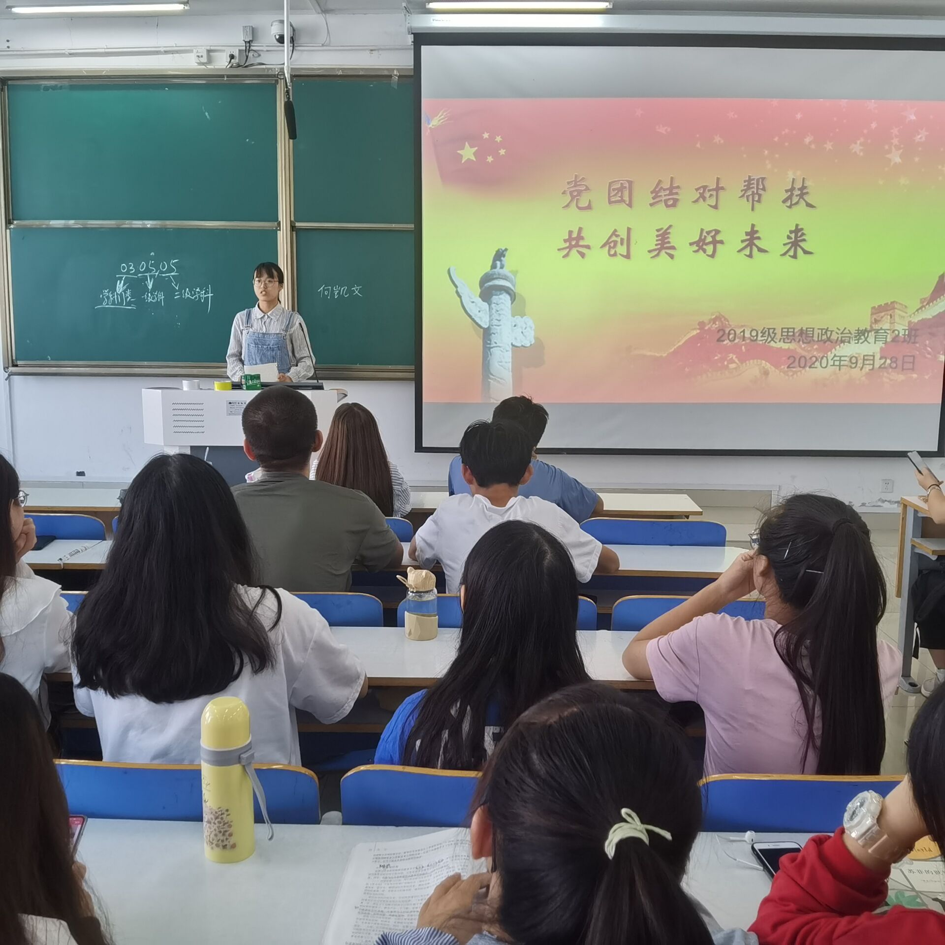 9月28日上午,太阳集团tyc59972019级思想政治教育二班在社科楼516教室召开了“党团结对帮扶,共创美好未来”主题会议。我院预备党员张晓艳、王文芳及2019级思想政治教育二班全体成员共同参会。会议由团支书孙雅娴主持。