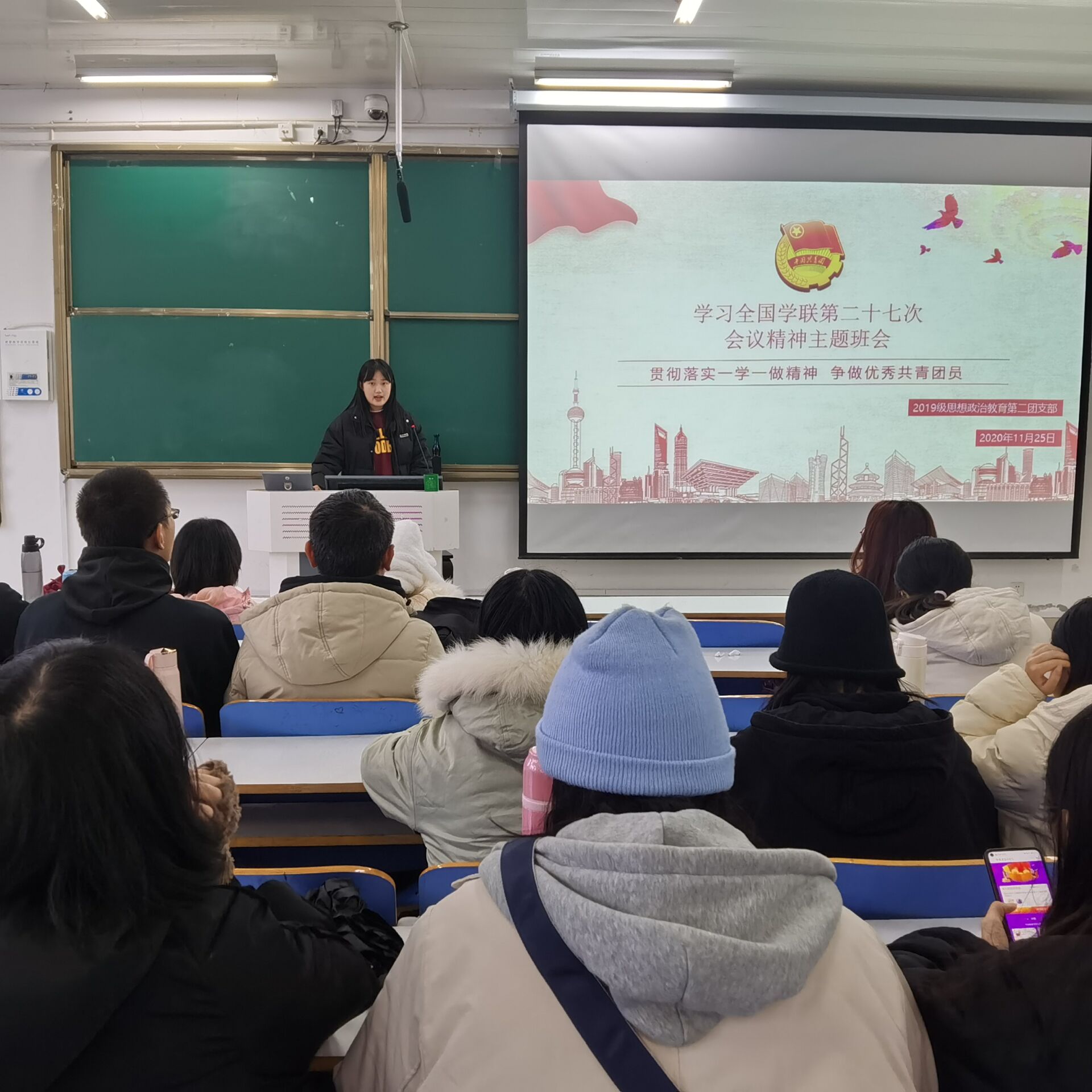 11月25日上午,太阳集团tyc59972019级思想政治教育二班于社科楼516教室顺利召开了学习中华全国学生联合会第二十七次代表大会精神传达培训会。我班全体同学共同参会,会议由团支书孙雅娴主持。
